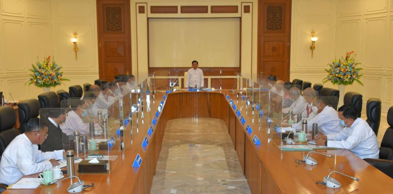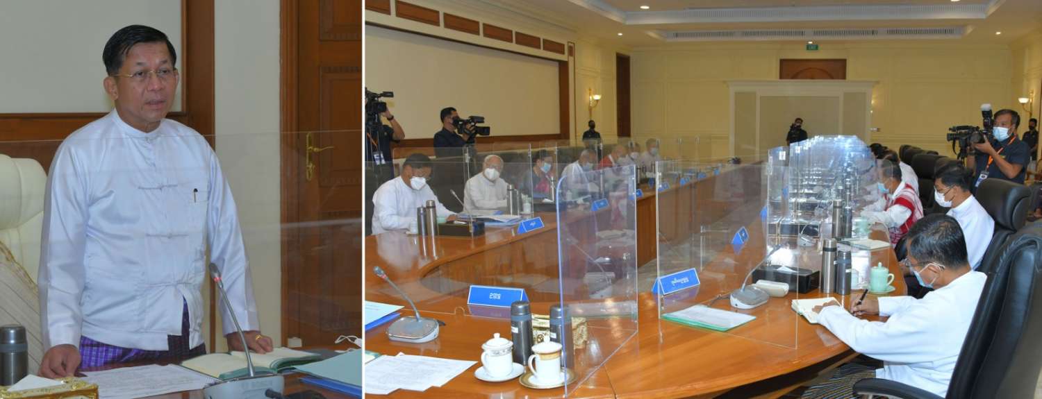 နိုင်ငံတော်စီမံအုပ်ချုပ်ရေးကောင်စီ အစည်းအဝေး(၈/၂၀၂၂)ကို ယနေ့မွန်းလွဲပိုင်းတွင် နေပြည်တော်ရှိ နိုင်ငံတော်စီမံအုပ်ချုပ်ရေးကောင်စီဥက္ကဋ္ဌရုံး အစည်းအဝေးခန်းမ၌ ကျင်းပပြုလုပ်ရာ နိုင်ငံတော်စီမံအုပ်ချုပ်ရေးကောင်စီဥက္ကဋ္ဌ နိုင်ငံတော်ဝန်ကြီးချုပ် ဗိုလ်ချုပ်မှူးကြီး မင်းအောင်လှိုင် တက်ရောက်အမှာစကား ပြောကြားသည်။