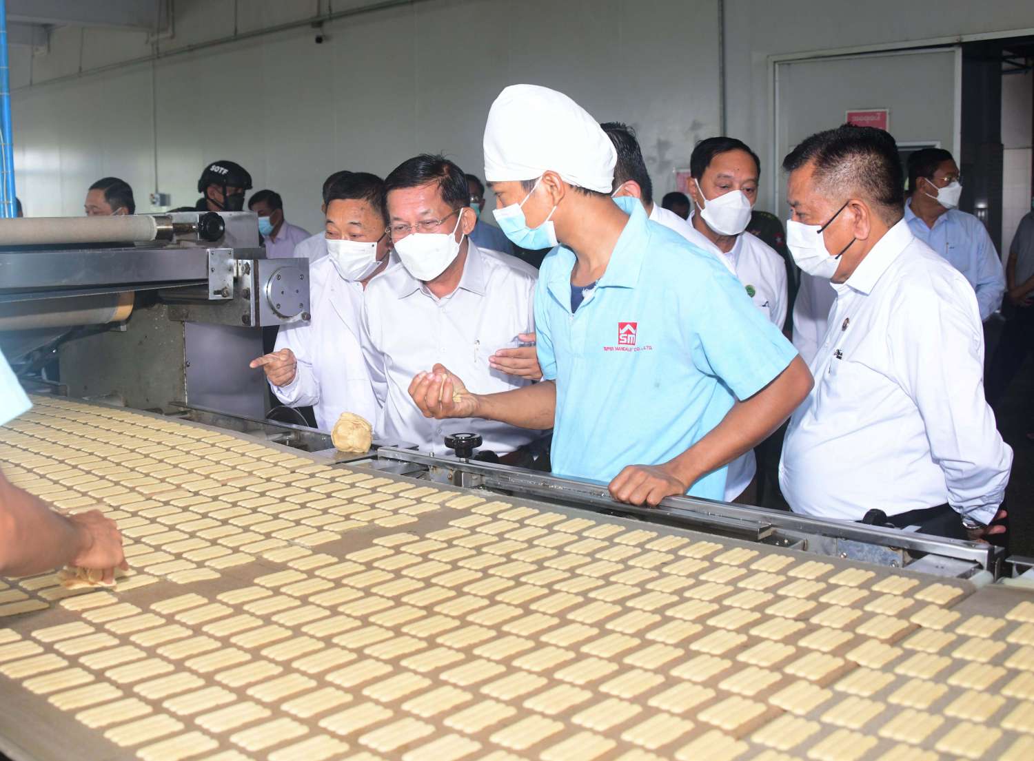 ဦးစွာ နိုင်ငံတော် စီမံအုပ်ချုပ်ရေး ကောင်စီ ဥက္ကဋ္ဌ နိုင်ငံတော် ဝန်ကြီးချုပ်နှင့် အဖွဲ့ဝင်များသည် ပြည်ကြီးတံခွန် မြို့နယ်ရှိ Super Mandalay Co.Ltd ၏ ဘုရင် ဘီစကစ်စက်ရုံသို့ ရောက်ရှိကြရာ လုပ်ငန်းရှင် ဦးမြင့်စိန်နှင့် အဖွဲ့ဝင်များက ကြိုဆိုနှုတ် ဆက်ကြသည်။ ထို့နောက်စက်ရုံအတွင်း ကုန်ကြမ်းအဆင့်မှထုပ်ပိုးမှုအထိ ကုန်ပစ္စည် များ အဆင့်ဆင့် ထုတ်လုပ်နေမှု အခြေအနေများကို လိုက်လံရှင်းလင်းပြသရာ နိုင်ငံတော် စီမံအုပ်ချုပ်ရေး ကောင်စီ ဥက္ကဋ္ဌ နိုင်ငံတော် ဝန်ကြီးချုပ်က သိရှိလိုသည်များ ပြန်လည်မေးမြန်း ဆွေးနွေး ပြောကြားသည်။