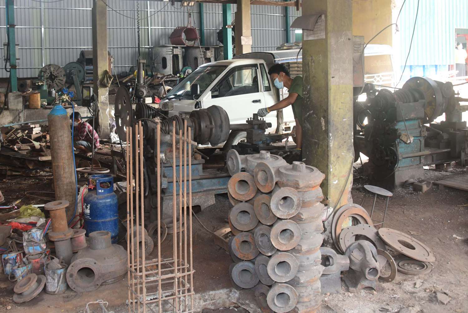 ယင်းနောက် နိုင်ငံတော် စီမံအုပ်ချုပ်ရေး ကောင်စီဥက္ကဋ္ဌ နိုင်ငံတော် ဝန်ကြီးချုပ်နှင့် အဖွဲ့ဝင်များသည် ပိုင်ဖြိုးမြန်မာ ကုမ္ပဏီ၏ အောင်နိုင်သူ တွင်နှင့်သံရည်ကျို လယ်ယာသုံးရေပန့် သံမဏိ သွန်းထည်လုပ်ငန်းသို့ ရောက်ရှိကြရာ လုပ်ငန်းရှင် ဦးအောင်ဆန်းက ကုန်ကြမ်း စုဆောင်းရရှိမှု၊ ကုန်ကြမ်းမှ တဆင့် သံရည်ကျိုချက်ပြီး စိုက်ပျိုးရေး လုပ်ငန်းသုံး ရေစုပ်ပန့် အပါအဝင် ပန့်အမျိုးမျိုးနှင့် ပန့်အပိုပစ္စည်းများ၊ သတ္တုသွန်းထည် ပစ္စည်းများ၊ ကြိတ်ခွဲရေး လုပ်ငန်းသုံး အပိုပစ္စည်းများ၊ ဆောက်လုပ်ရေး လုပ်ငန်းသုံး သံထည်ပစ္စည်းများ စသည်တို့ကို ထုတ်လုပ်နေမှု အခြေအနေများကို လိုက်လံရှင်းလင်း တင်ပြသည်။ ရှင်းလင်း တင်ပြမှုများအပေါ် နိုင်ငံတော် စီမံအုပ်ချုပ်ရေးကောင်စီ ဥက္ကဋ္ဌ နိုင်ငံတော် ဝန်ကြီးချုပ်က သိရှိလိုသည်များ ပြန်လည် မေးမြန်းဆွေးနွေး ပြောကြားပြီး လိုအပ်သည်များကို အကြံပြု ဆွေးနွေးသည်။