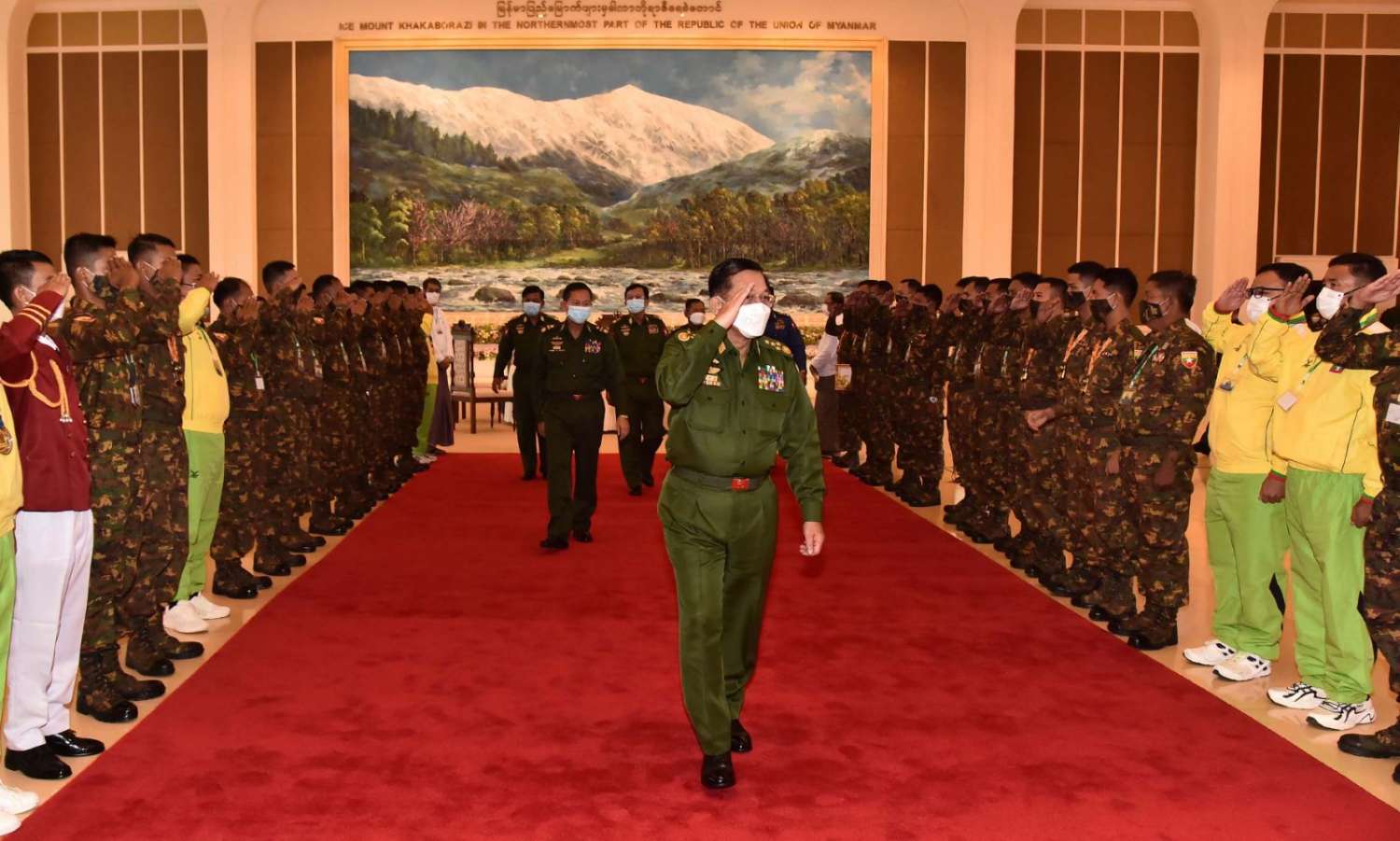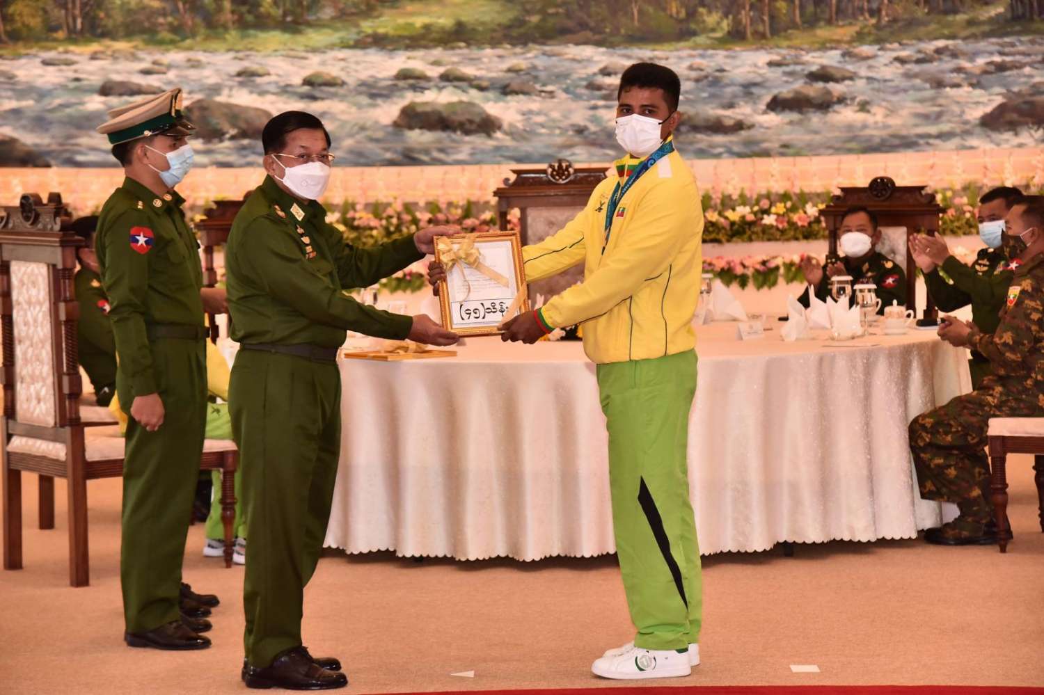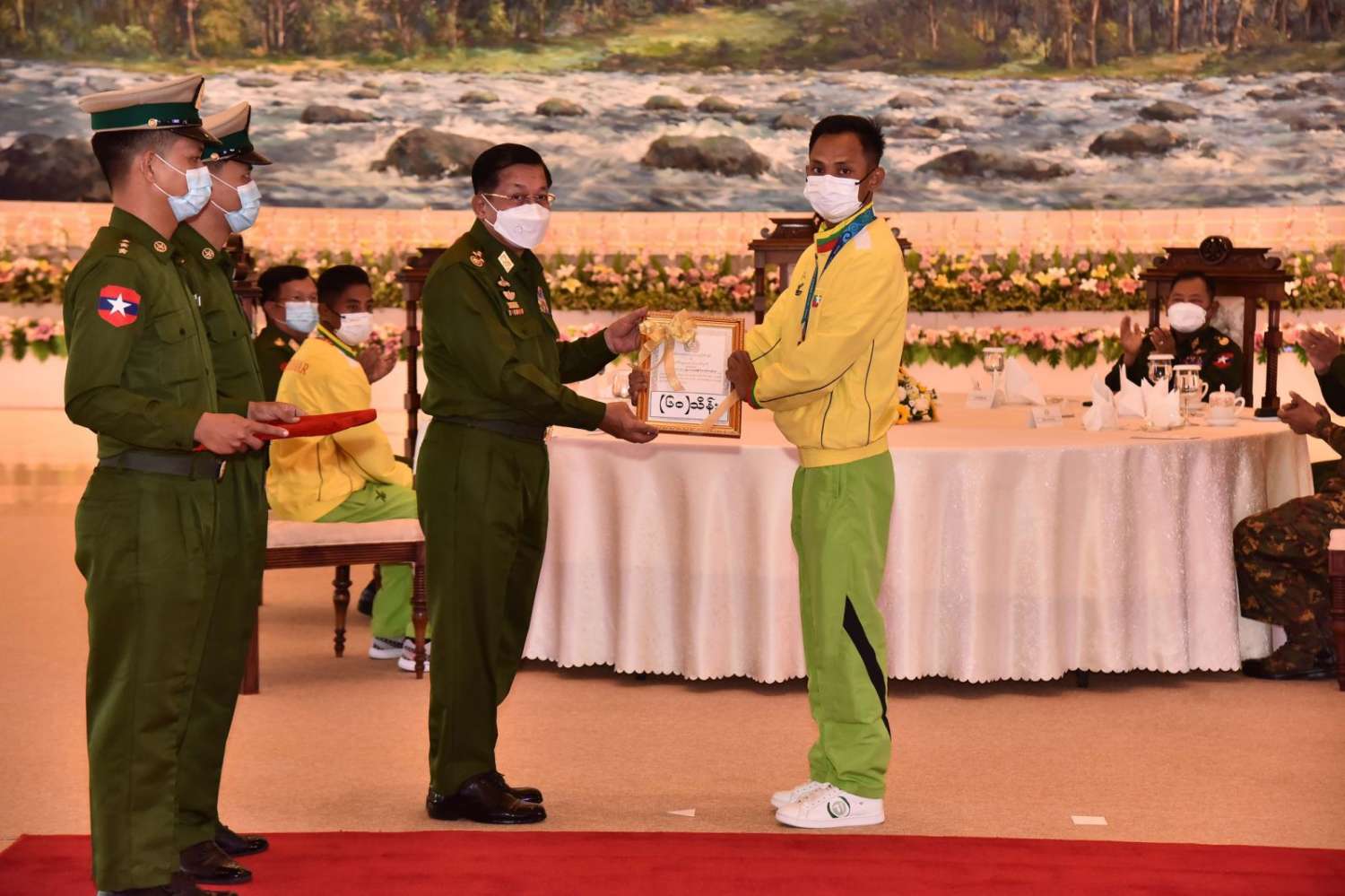 (၁၁) ကြိမ်မြောက် အာဆီယံမသန်စွမ်းသူများ အားကစားပြိုင်ပွဲတွင်ဆုရရှိခဲ့သော တပ်မတော်မှအားကစားသမားများနှင့် ဆုရရှိအောင်စွမ်းဆောင်ပေးနိုင်ခဲ့သည့် နည်းပြများ၊ နိုင်ငံတကာတပ်မတော်အားကစားပြိုင်ပွဲ (International Army Games-2022) နှင့် နိုင်ငံတကာဗိုလ်လောင်းများအားကစားပြိုင်ပွဲ (3rd World Cadet Games-2022) တို့တွင် ဆုရရှိခဲ့ကြသူများအား ဂုဏ်ပြုဆုများ ပေးအပ်ချီးမြှင့်ခြင်းအခမ်းအနားကို ယနေ့မွန်းလွဲပိုင်းတွင် နေပြည်တော်ရှိ ဇေယျာသီရိဗိမာန်ဧည့်ခန်းမဆောင်၌ ကျင်းပပြုလုပ်ရာ နိုင်ငံတော် စီမံအုပ်ချုပ်ရေးကောင်စီဥက္ကဋ္ဌ တပ်မတော်ကာကွယ်ရေးဦးစီးချုပ် ဗိုလ်ချုပ်မှူးကြီး မင်းအောင်လှိုင် တက်ရောက်၍ ဂုဏ်ပြုဆုများပေးအပ်ချီးမြှင့်သည်။