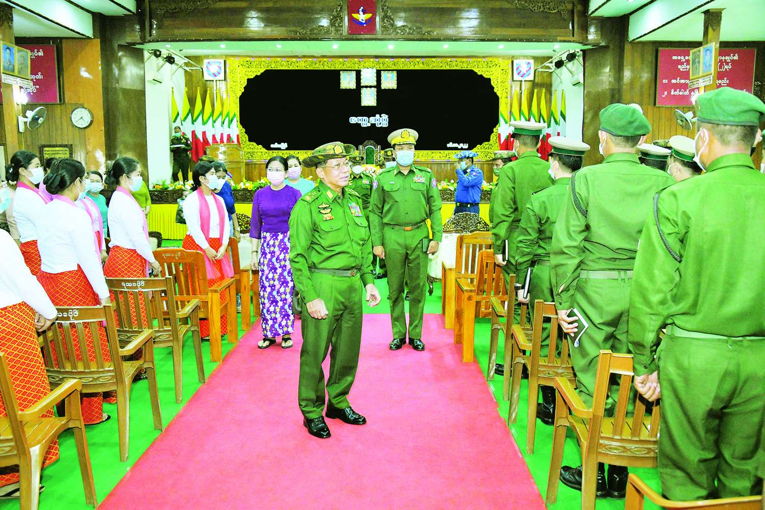 မိမိတို့နိုင်ငံသည် ပါတီစုံဒီမိုကရေစီစနစ်ပေါ်တွင် လျှောက်လှမ်းလျက်ရှိပြီး နိုင်ငံ ရေးအရ သဘောထားကွဲလွဲမှုများကြောင့် ပါတီတစ်ခုနှင့်တစ်ခု၊ အဖွဲ့တစ်ခုနှင့်တစ်ခု နိုင်ငံရေးအရ တိုက်ခိုက်ခြင်းများရှိကြောင်း၊ ထိုသို့ဖြစ်ပေါ်ရခြင်းမှာ နိုင်ငံရေးအရ မရင့်ကျက်ခြင်းများကြောင့် ဖြစ်ပြီး တပ်မတော်သည် ခိုင်မာသည့်အဖွဲ့ အစည်းတစ်ခုဖြစ်သဖြင့် တပ်မတော်၏ ထောက်ခံမှုများကို လိုလားကြကြောင်း၊ သို့သော် အချို့သော အဖွဲ့များက တပ်မတော်အင်အားချိနဲ့စေရန် တိုက်ခိုက်မှုများ ရှိခဲ့ကြောင်း၊ ၂၀၂၀ ပြည့်နှစ်ပါတီစုံဒီမိုကရေစီ အထွေထွေရွေးကောက်ပွဲတွင် မဲမသမာမှုများကြောင့် နိုင်ငံ ရေး ပြဿနာများဖြစ်ပေါ်ခဲ့ပြီး အခြေခံဥပဒေအရ တပ်မတော်မှ နိုင်ငံတော်တာဝန်ကို ထမ်းဆောင်ခဲ့ရကြောင်း၊ ထို့ကြောင့် တပ်တွင်းစည်းလုံးညီညွတ်ရေးကို ပြိုကွဲစေရန်နှင့် တပ်မတော်၏ အင်အားကို ချိနဲ့စေရန်ကြိုးပမ်းဆောင်ရွက်လာမှု များရှိလာခဲ့သည်ကို တွေ့ရှိကြရမည်ဖြစ်ကြောင်း၊ ခေါင်းဆောင်မှုမှန်ကန်ပြီး တပ်မတော်အတွင်း စည်းလုံးညီညွတ်မှုရှိနေသည့် ကာလတစ်လျှောက်လုံး တိုင်းပြည်ကို ဖြိုခွဲ၍ရနိုင်မည် မဟုတ်ကြောင်း၊ တပ်မတော်အနေဖြင့် တပ်တွင်းစည်းလုံးညီညွတ်ရေးကို ယခင်ကတည်းက ဆောင်ရွက်ခဲ့ပြီး သက်သာချောင်ချိရေး လုပ်ငန်းများ၊ တပ်တည်ဆောက်ရေး လုပ်ငန်းများနှင့် လေ့ကျင့်ရေးလုပ်ငန်းများကို အမြဲမပြတ်ဆောင် ရွက်ခဲ့ကြောင်း၊ လေ့ကျင့်ရေး၊ အုပ်ချုပ်ရေး၊ သက်သာချောင်ချိရေး၊ စိတ်ဓာတ် စသည်တို့ဖြင့် တပ်တည်ဆောက်ရေး လုပ်ငန်း များကို ဆောင်ရွက်ခဲ့ကြောင်း။