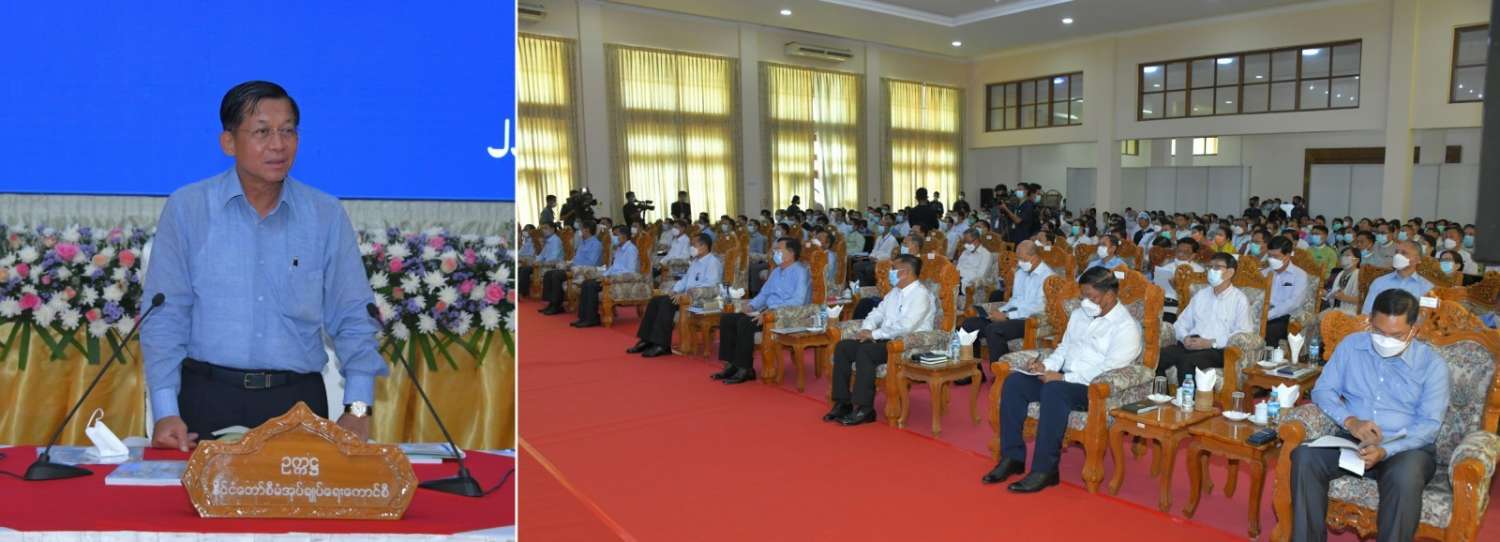 နိုင်ငံတော်စီမံအုပ်ချုပ်ရေးကောင်စီဥက္ကဋ္ဌ နိုင်ငံတော်ဝန်ကြီးချုပ် ဗိုလ်ချုပ်မှူးကြီးမင်းအောင်လှိုင်သည် ယနေ့မွန်းလွဲပိုင်းတွင် နေပြည်တော်ကောင်စီနယ်မြေအတွင်းရှိ အသေးစား၊ အငယ်စားနှင့်အလတ်စားစီးပွားရေး (MSME) လုပ်ငန်းရှင်များအား နေပြည်တော်ကောင်စီရုံးဝင်းရှိ ဇမ္ဗူသီရိခန်းမ၌တွေ့ဆုံ၍ ဒေသတွင်းစီးပွားရေး လုပ်ငန်းများ ဖွံ့ဖြိုးတိုးတက်ရေးအတွက် ဆွေးနွေးပြောကြားသည်။