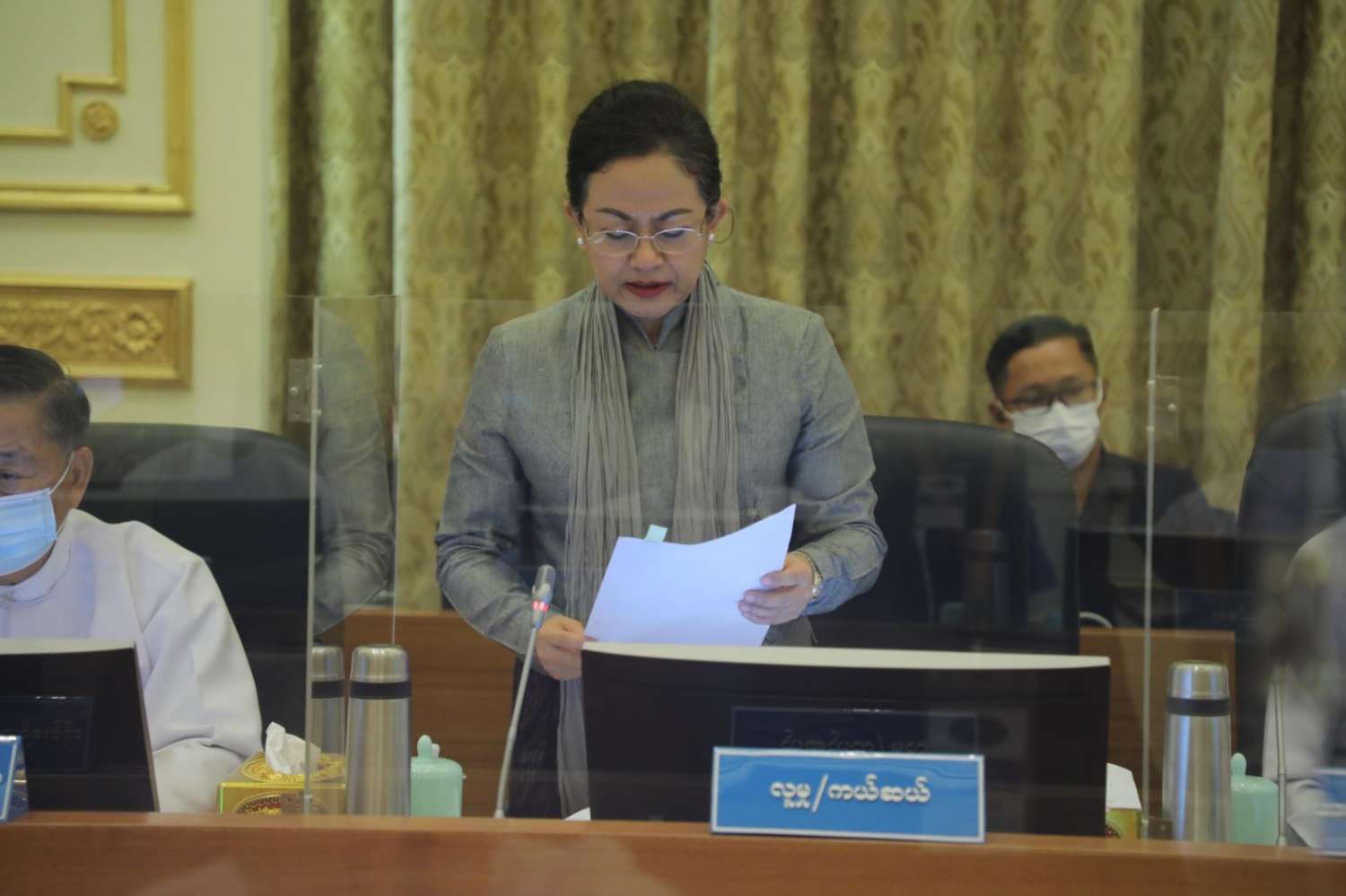 ယင်းနောက် အစည်းအဝေးသို့ တက်ရောက်လာကြသည့် ပြည်ထောင်စုဝန်ကြီးများက သက်ဆိုင်ရာ ကဏ္ဍအလိုက် ရှင်းလင်းတင်ပြကြသည်။