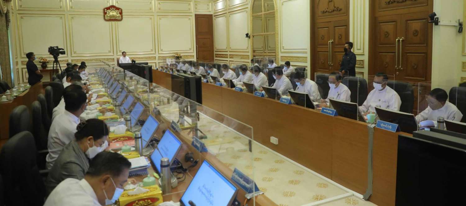 ပြည်ထောင်စုအစိုးရအဖွဲ့အစည်းအဝေး အမှတ်စဉ်(၈/၂၀၂၂)ကို ယနေ့မွန်းလွဲပိုင်းတွင် နေပြည်တော်ရှိ နိုင်ငံတော်စီမံအုပ်ချုပ်ရေးကောင်စီဥက္ကဋ္ဌရုံး အစည်းအဝေးခန်းမ၌ ကျင်းပရာ နိုင်ငံတော်စီမံအုပ်ချုပ်ရေးကောင်စီဥက္ကဋ္ဌ နိုင်ငံတော်ဝန်ကြီးချုပ် ဗိုလ်ချုပ်မှူးကြီးမင်းအောင်လှိုင် တက်ရောက်အမှာစကားပြောကြားသည်။