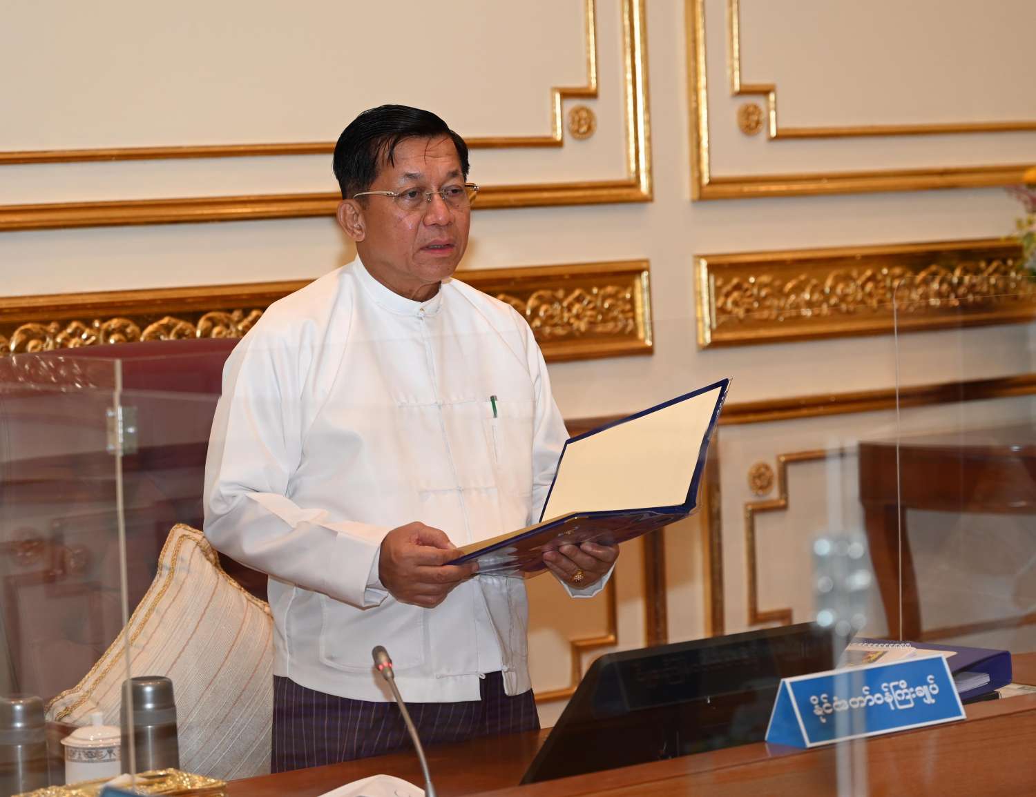 ဘဏ္ဍာရေးဆိုင်ရာကော်မရှင် အစည်းအဝေးအမှတ်စဉ် (၂/၂၀၂၂) ကို ယနေ့မွန်းလွဲပိုင်းတွင် နေပြည်တော်ရှိ နိုင်ငံတော်စီမံအုပ်ချုပ်ရေးကောင်စီဥက္ကဋ္ဌရုံး အစည်းအဝေးခန်းမ၌ကျင်းပရာ ဘဏ္ဍာရေးဆိုင်ရာကော်မရှင်ဥက္ကဋ္ဌ နိုင်ငံတော်စီမံအုပ်ချုပ်ရေးကောင်စီဥက္ကဋ္ဌ နိုင်ငံတော်ဝန်ကြီးချုပ် ဗိုလ်ချုပ်မှူးကြီး မင်းအောင်လှိုင် တက်ရောက်အမှာစကား ပြောကြားသည်။