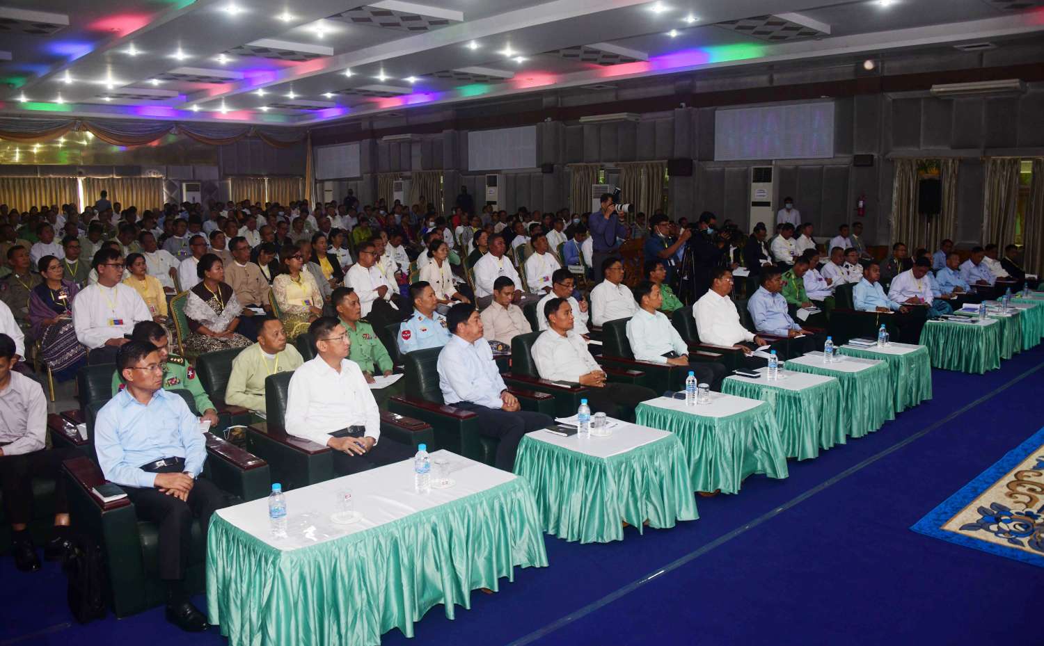 အဆိုပါ တွေ့ဆုံပွဲသို့ နိုင်ငံတော်စီမံအုပ်ချုပ်ရေးကောင်စီဥက္ကဋ္ဌ နိုင်ငံတော်ဝန်ကြီးချုပ်နှင့်အတူ ကောင်စီတွဲဖက်အတွင်းရေးမှူး ဒုတိယဗိုလ်ချုပ်ကြီး ရဲဝင်းဦး၊ ပြည်ထောင်စုဝန်ကြီးများ ဖြစ်ကြသည့် ဦးဝင်းရှိန်၊ ဒေါက်တာကံဇော်၊ ဦးလှမိုး၊ ဒေါက်တာချာလီသန်း၊ မကွေးတိုင်းဒေသကြီးဝန်ကြီးချုပ် ဦးတင့်လွင်၊ ကာကွယ်ရေးဦးစီးချုပ်ရုံးမှ တပ်မတော်အရာရှိကြီးများ၊ အလယ်ပိုင်းတိုင်းစစ်ဌာနချုပ် တိုင်းမှူးနှင့် တာဝန်ရှိသူများ၊ တိုင်းဒေသကြီး အစိုးရအဖွဲ့ဝင်များ၊ တိုင်းဒေသကြီးအတွင်းရှိ အသေးစား၊ အငယ်စားနှင့် အလတ်စားစီးပွားရေး (MSME) လုပ်ငန်းရှင်များ တက်ရောက်ကြသည်။