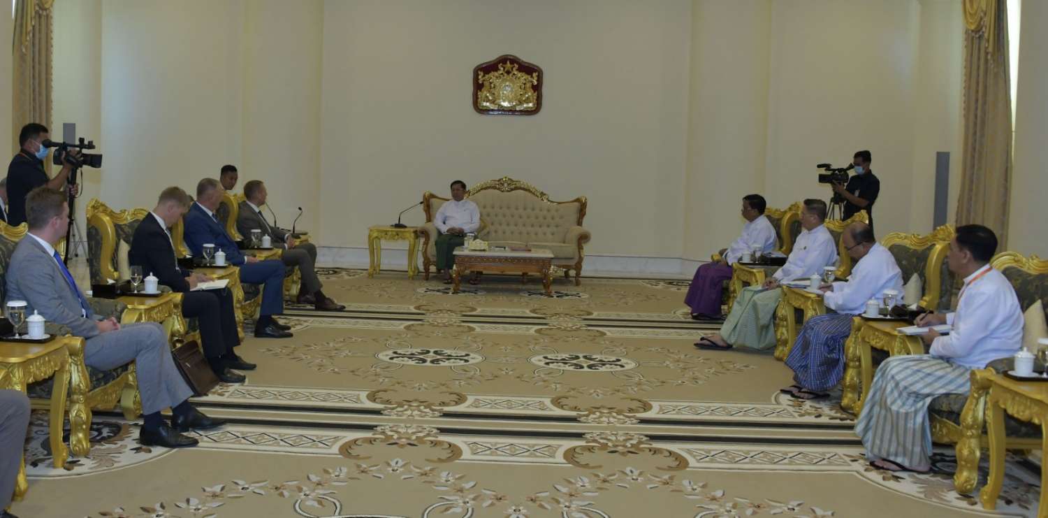 နိုင်ငံတော်စီမံအုပ်ချုပ်ရေးကောင်စီဥက္ကဋ္ဌ နိုင်ငံတော်ဝန်ကြီးချုပ် ဗိုလ်ချုပ်မှူးကြီးမင်းအောင်လှိုင်ထံ ရုရှားဖက်ဒေရေးရှင်းနိုင်ငံ ၊ နိုင်ငံခြားစီးပွားရေးဆိုင်ရာအဖွဲ့အစည်း (JSC “Tyazhpromexport”) ၏ ညွှန်ကြားရေးမှူးချုပ် Mr. Sergey Egorov ဦးဆောင်သည့် ကိုယ်စားလှယ်အဖွဲ့က ယနေ့မွန်းလွဲပိုင်းတွင် နေပြည်တော်ရှိ နိုင်ငံတော်စီမံအုပ်ချုပ်ရေးကောင်စီဥက္ကဋ္ဌရုံး ဧည့်ခန်းမ၌ လာရောက်ဂါရ၀ပြုတွေ့ဆုံသည်။