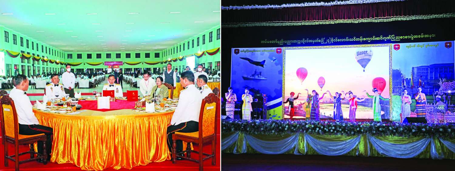 ညပိုင်းတွင် နိုင်ငံတော်စီမံအုပ်ချုပ်ရေးကောင်စီ ဒုတိယဥက္ကဋ္ဌ ဒုတိယတပ်မတော်ကာကွယ်ရေးဦးစီးချုပ် ကာကွယ်ရေးဦးစီးချုပ်(ကြည်း) ဒုတိယဗိုလ်ချုပ်မှူးကြီး စိုးဝင်းနှင့်အဖွဲ့ဝင်များသည် တပ်မတော်နည်းပညာတက္ကသိုလ် ဗိုလ်လောင်းသင်တန်း အမှတ်စဉ်(၂၄) သင်တန်းဆင်းဂုဏ်ပြု ညစာစားပွဲအခမ်းအနားသို့ တက်ရောက်ချီးမြှင့်ခဲ့ကြောင်းနှင့် ညစာမသုံးဆောင်မီနှင့် သုံးဆောင်နေစဉ်အတွင်း ကာကွယ်ရေးဦးစီးချုပ်ရုံး (ကြည်း) ပြည်သူ့ဆက်ဆံရေးနှင့် စိတ်ဓာတ်စစ်ဆင်ရေးညွှန်ကြားရေးမှူးရုံး ကွပ်ကဲမှုအောက် မြဝတီတေးဂီတအဖွဲ့က တေးသီချင်းများဖြင့် သီဆိုတီးမှုတ်ဖျော်ဖြေကြရာ နိုင်ငံတော်စီမံအုပ်ချုပ်ရေးကောင်စီ ဒုတိယဥက္ကဋ္ဌ ဒုတိယတပ်မတော်ကာကွယ်ရေး ဦးစီးချုပ်ကာကွယ်ရေးဦးစီးချုပ်(ကြည်း)နှင့် တက်ရောက်လာကြသူများက ကြည့်ရှုအားပေးခဲ့ကြောင်း သတင်းရရှိသည်။
