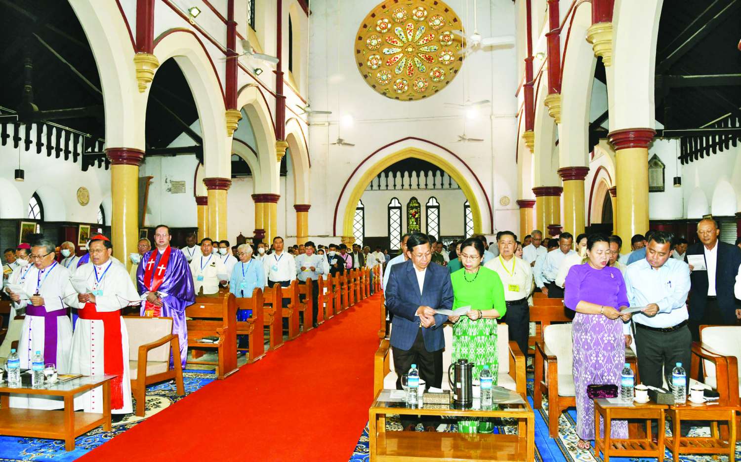 အဆိုပါ အခမ်းအနားသို့ နိုင်ငံတော်စီမံအုပ်ချုပ်ရေးကောင်စီဥက္ကဋ္ဌ နိုင်ငံတော်ဝန်ကြီးချုပ်နှင့် ဇနီး ဒေါ်ကြူကြူလှ၊ ကောင်စီတွဲဖက်အတွင်းရေးမှူးနှင့် ဇနီး၊ ကောင်စီဝင်များနှင့် ဇနီးများ၊ ပြည်ထောင်စုဝန်ကြီးများနှင့် ဇနီးများ၊ ကာကွယ်ရေးဦးစီးချုပ်ရုံးမှ တပ်မတော်အရာရှိကြီးများနှင့် ဇနီးများ၊ ရန်ကုန်တိုင်းဒေသကြီးဝန်ကြီးချုပ်၊ ရန်ကုန်တိုင်းစစ်ဌာနချုပ်တိုင်းမှူး၊ မြို့တော်ဝန်၊ မြန်မာနိုင်ငံ ခရစ်ယာန်ကောင်စီမှ ဆရာတော်ကြီးများ၊ မြန်မာနိုင်ငံကက်သလစ်သာသနာမှ ဆရာတော်ကြီးများ၊ မြန်မာနိုင်ငံ ဧဝံဂေလိခရစ်ယာန်မဟာမိတ်အဖွဲ့ချုပ်မှ ဆရာတော်ကြီးများ၊ မြန်မာနိုင်ငံခရစ်တော်သာသနာပြန့်ပွားမှုပူးပေါင်းဆောင်ရွက်ရေးအဖွဲ့ချုပ်မှ ဆရာတော်ကြီးများ၊ ဘာသာပေါင်းစုံချစ်ကြည်ရေးအဖွဲ့မှ တာဝန်ရှိသူများ၊ ဖိတ်ကြားထားသည့် ဧည့်သည်တော်များ၊ မြန်မာနိုင်ငံရှိ ခရစ်ယာန်ဘာသာဝင်များ၊ ကက်သလစ်လူငယ်အဖွဲ့များနှင့် ခရစ်ယာန်ဘာသာဝင်ရပ်မိရပ်ဖများ တက်ရောက်ကြသည်။