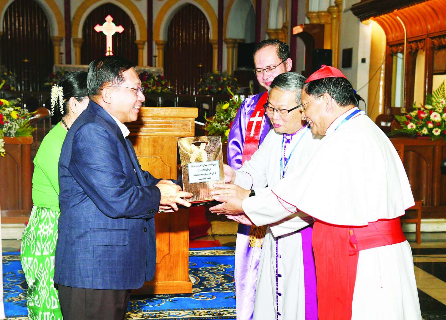 မြန်မာနိုင်ငံခရစ်ယာန်အသင်းတော်များကောင်စီ၊ ပြည်ထောင်စုသမ္မတမြန်မာနိုင်ငံတော် ကတ်သလစ်ဆရာတော်ကြီးများ၊ မြန်မာနိုင်ငံဧဝံဂေလိခရစ်ယာန်မဟာမိတ်အဖွဲ့ချုပ်၊ မြန်မာနိုင်ငံခရစ်တော်သာသနာပြန့်ပွားမှုပူးပေါင်းဆောင်ရွက်ရေးအဖွဲ့တို့က စုပေါင်းကျင်းပပြုလုပ်သည့် ခရစ်တော်မွေးနေ့(ခရစ္စမတ်)ကျေးဇူးတော်ချီးမွမ်းခြင်းအခမ်းအနားကို ယနေ့ညနေပိုင်းတွင် ရန်ကုန်တိုင်းဒေသကြီး၊ ပန်းဘဲတန်းမြို့နယ်၊ ဗိုလ်ချုပ်အောင်ဆန်းလမ်းနှင့် ရွှေတိဂုံဘုရားလမ်းထောင့်ရှိ Holy Cathedral Church ၌ ကျင်းပပြုလုပ်ရာ နိုင်ငံတော်စီမံအုပ်ချုပ်ရေးကောင်စီဥက္ကဋ္ဌ နိုင်ငံတော်ဝန်ကြီးချုပ် ဗိုလ်ချုပ်မှူးကြီး မင်းအောင်လှိုင် တက်ရောက်ချီးမြှင့်သည်။