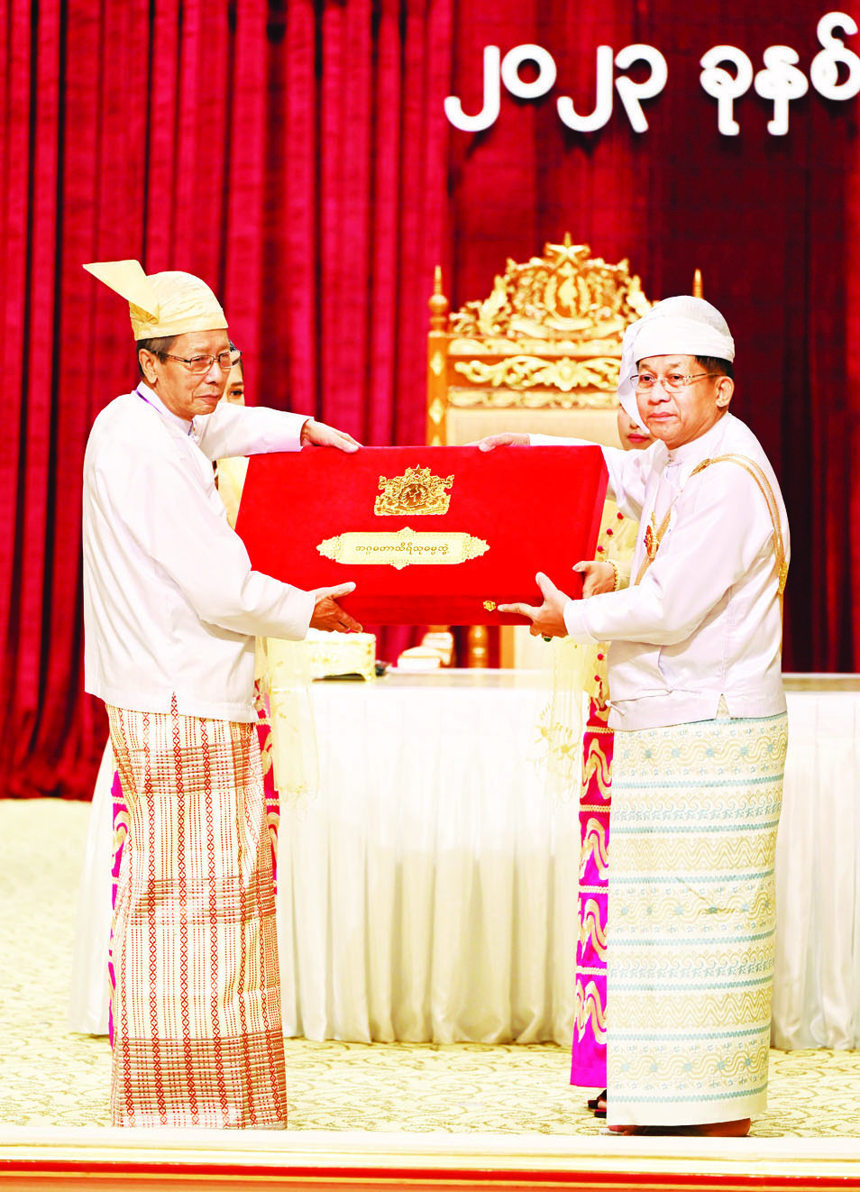 ယနေ့သည် မိမိတို့မြန်မာနိုင်ငံအတွက် မမေ့အပ်သည့် (၇၅)နှစ်မြောက် စိန်ရတုလွတ်လပ်ရေးနေ့ နေ့ထူးနေ့မြတ်အထိမ်းအမှတ်အဖြစ် ကျင်းပပြုလုပ်သည့် ဂုဏ်ထူးဆောင်ဘွဲ့များ ချီးမြှင့်အပ်နှင်းသည့်နေ့ဖြစ်ပါကြောင်း၊ အေးချမ်းသာယာပြီး ခေတ်မီဖွံ့ဖြိုးတိုးတက်သည့် နိုင်ငံတော်တည်ဆောက်ရာတွင် လွတ်လပ်ရေးကြိုးပမ်းမှုကာလမှ ယနေ့အထိ အသက်ခန္ဓာနှင့်သွေးချွေးများကိုပေးဆပ်ပြီး ထူးကဲစွာ ဆောင်ရွက်ခဲ့ကြသည့်ပုဂ္ဂိုလ်များ၊ ဒို့တာဝန်အရေးသုံးပါးကို ကာကွယ်စောင့်ရှောက်ရာတွင် သက်စွန့်ကြိုးပမ်းထမ်းဆောင်ခဲ့ကြသည့်ပုဂ္ဂိုလ်များ၊ နိုင်ငံတော်၏စီးပွားရေး၊ လူမှုရေး၊ ပြည်သူ့ရေးရာစီမံခန့်ခွဲရေးကဏ္ဍများတွင် ထူးခြားထက်မြက်စွာ စွမ်းဆောင်နိုင်ခဲ့ကြသည့်ပုဂ္ဂိုလ်များ၊ နယ်ဘက်နှင့်စစ်ဘက်ဆိုင်ရာတို့တွင် တိုင်းကျိုးပြည်ကျိုးကိုအများနှင့်မတူအောင် ထူးခြားစွာစွမ်းဆောင်နိုင်ခဲ့ကြသည့် ပုဂ္ဂိုလ်များ၊ နိုင်ငံနှင့်လူမျိုးအတွက် သိပ္ပံပညာ၊ ဝိဇ္ဇာပညာနှင့်အခြားသောပညာရပ်တစ်ခုခုတွင် ကမ္ဘာအဆင့်မီအောင်မြင်စွာ တီထွင်ဖန်တီး စွမ်းဆောင်နိုင်သည့်ပုဂ္ဂိုလ်များ၊ စာပေနှင့်အနုသုခုမပညာရပ်များတွင် ထူးခြားကောင်းမွန်စွာ တတ်မြောက်သူပုဂ္ဂိုလ်များ၊ နိုင်ငံတော်လုံခြုံရေး၊ ရပ်ရွာအေးချမ်းသာယာရေးနှင့် တရားဥပဒေစိုးမိုးရေးတို့တွင် မဆုတ်မနစ်သော ဇွဲ၊ လုံ့လ၊ ဝီရိယနှင့် ကြိုးပမ်းထမ်းဆောင်ခဲ့ကြသည့် ပုဂ္ဂိုလ်များကို ယခုကဲ့သို့မင်္ဂလာရှိပြီး ထူးခြားလေးနက်သည့် အခါသမယတွင် စိန်ရတုလွတ်လပ်ရေးနေ့အထိမ်းအမှတ်အဖြစ် ဂုဏ်ထူးဆောင်ဘွဲ့များကို ဂုဏ်ပြုချီးမြှင့်အပ်နှင်းသွားမည်ဖြစ်ပါကြောင်း။