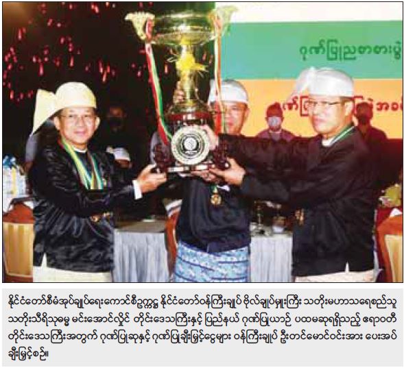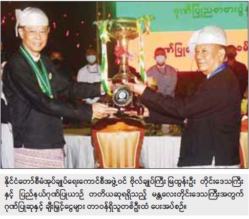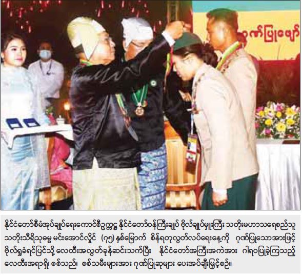 ထို့နောက် ကောင်စီဝင် ဗိုလ်ချုပ်ကြီး မြထွန်းဦးက တိုင်းဒေသကြီးနှင့် ပြည်နယ် ဂုဏ်ပြုယာဉ် တတိယဆုရရှိသည့် မန္တလေးတိုင်းဒေသကြီးနှင့် ပြည်ထောင်စုဝန်ကြီးဌာန ဂုဏ်ပြုယာဉ် တတိယဆု ရရှိသည့် ဆောက်လုပ်ရေးဝန်ကြီးဌာနတို့အတွက် ဂုဏ်ပြုဆုနှင့် ချီးမြှင့်ငွေများကို တာဝန်ရှိသူများထံ ပေးအပ်ချီးမြှင့်သည်။