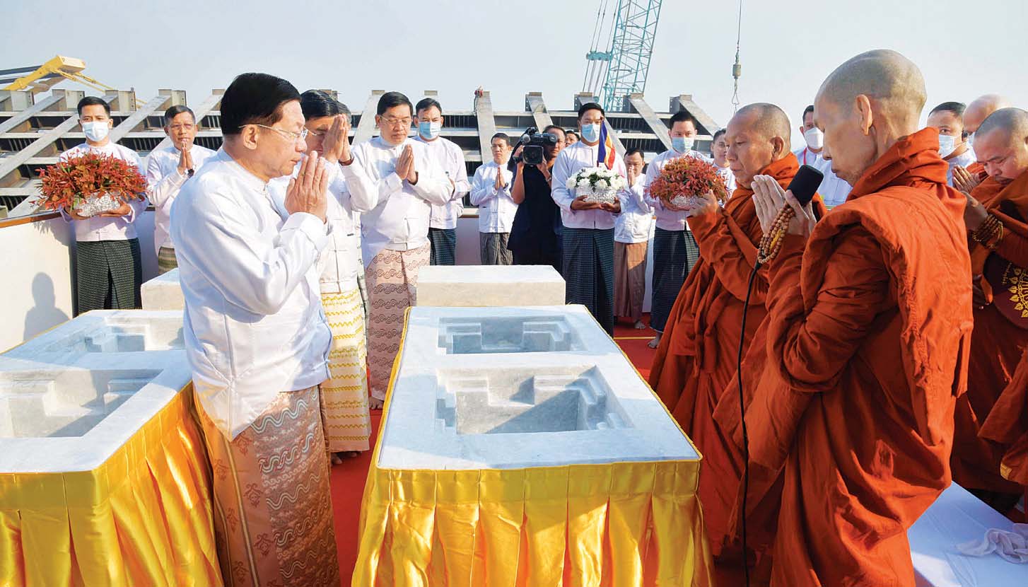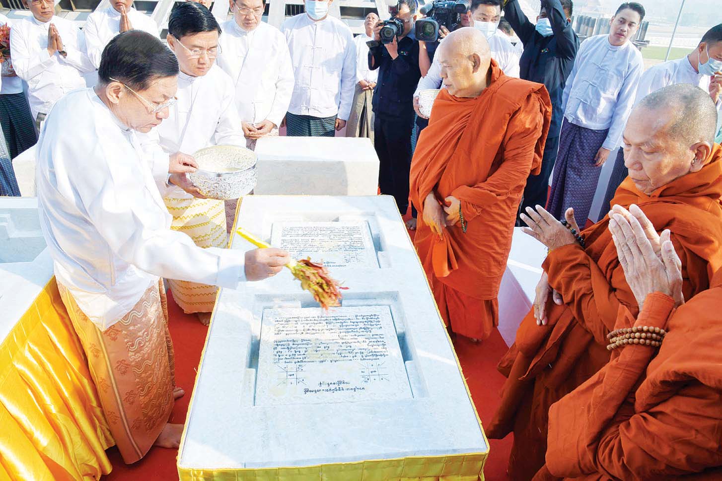 မာရဝိဇယဗုဒ္ဓရုပ်ပွားတော်မြတ်ကြီး ရတနာပလ္လင်တော်ထက် အလယ်ဗဟိုဌာနများတွင် ဦးဆောင်ဘုရားဒါယကာ နိုင်ငံတော်စီမံအုပ်ချုပ်ရေးကောင်စီဥက္ကဋ္ဌ နိုင်ငံတော်ဝန်ကြီးချုပ် ဗိုလ်ချုပ်မှူးကြီး မင်းအောင်လှိုင် အမှူးပြုသည့် ပြည်ထောင်စုသမ္မတမြန်မာနိုင်ငံတော် တစ်ဝန်းလုံးမှ ဌာပနာတော်ကုသိုလ်ရှင်များ လှူဒါန်းထားရှိသော ဌာပနာတော်များ သွင်းလှူပူဇော်ခြင်း မဟာမင်္ဂလာအခမ်းအနား ကျင်းပပြုလုပ်