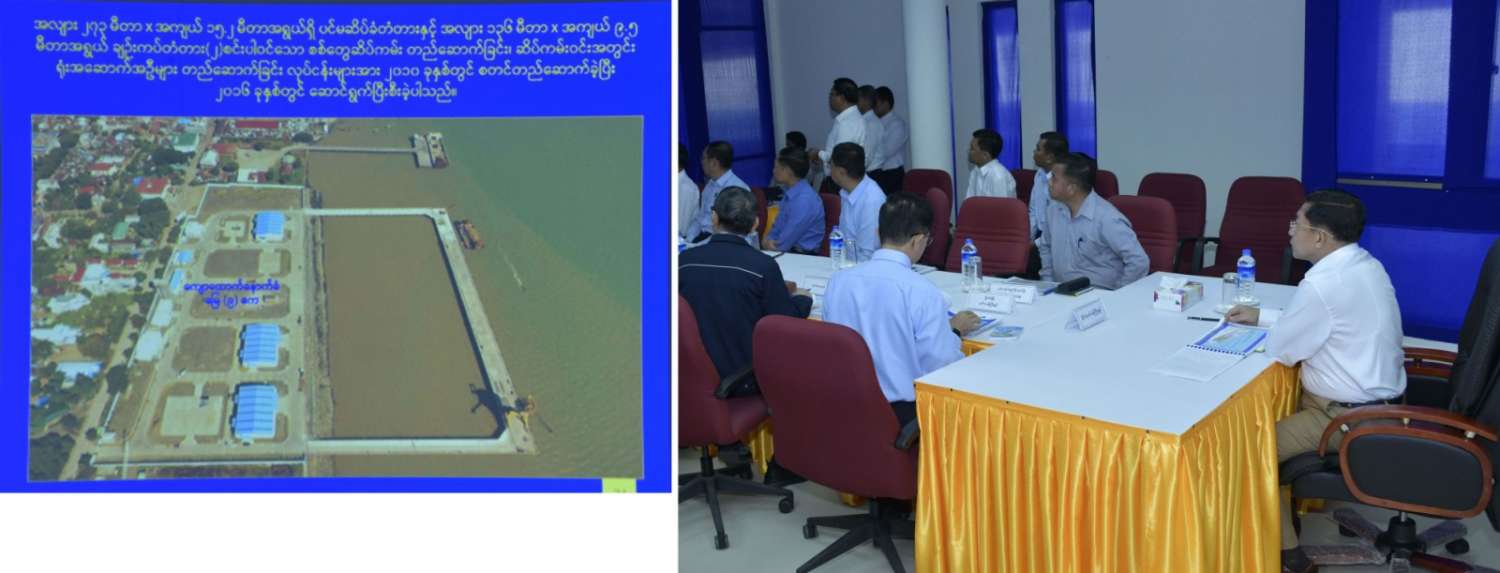 ထို့နောက် နိုင်ငံတော်စီမံအုပ်ချုပ်ရေးကောင်စီဥက္ကဋ္ဌ နိုင်ငံတော်ဝန်ကြီးချုပ်နှင့် အဖွဲ့ဝင်များသည် ကုလားတန်မြစ်ကြောင်း ဘက်စုံသုံးဖြတ်သန်းသယ်ယူပို့ဆောင်ရေးစီမံကိန်း လုပ်ငန်းခွင်အတွင်း လှည့်လည်ကြည့်ရှုရာ စစ်တွေမြို့ဆိုင်ရာ အိန္ဒိယနိုင်ငံ ကောင်စစ်ဝန်ချုပ် Mr. Bibekananda Bhattamishra နှင့် တာဝန်ရှိသူများက လုပ်ငန်းဆောင်ရွက်နေမှုအခြေအနေများကို ရှင်းလင်းတင်ပြသည်။ ရှင်းလင်းတင်ပြမှုများအပေါ် နိုင်ငံတော်စီမံအုပ်ချုပ်ရေးကောင်စီဥက္ကဋ္ဌ နိုင်ငံတော်ဝန်ကြီးချုပ်က လိုအပ်သည်များ ပြန်လည်ဆွေးနွေးမှာကြားသည်။