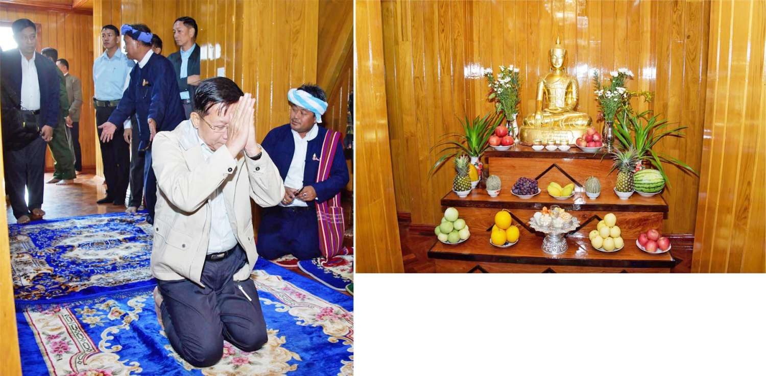 ထို့နောက် နိုင်ငံတော်စီမံအုပ်ချုပ်ရေးကောင်စီဥက္ကဋ္ဌ နိုင်ငံတော်ဝန်ကြီးချုပ်နှင့်အဖွဲ့ဝင်များသည် ကျောက်တလုံးကြီးမြို့၊ ဗိုလ်ပန္တကုန်းတော်တွင် တည်ထားကိုးကွယ်ထားရှိသည့် မဟာဝံသဗုဒ္ဓဂယာစေတီတော်သို့ သွားရောက်ဖူးမြော်ကြည်ညိုပြီး ပန်းရေချမ်းဆီမီးကပ်လှူပူဇော်သည်။