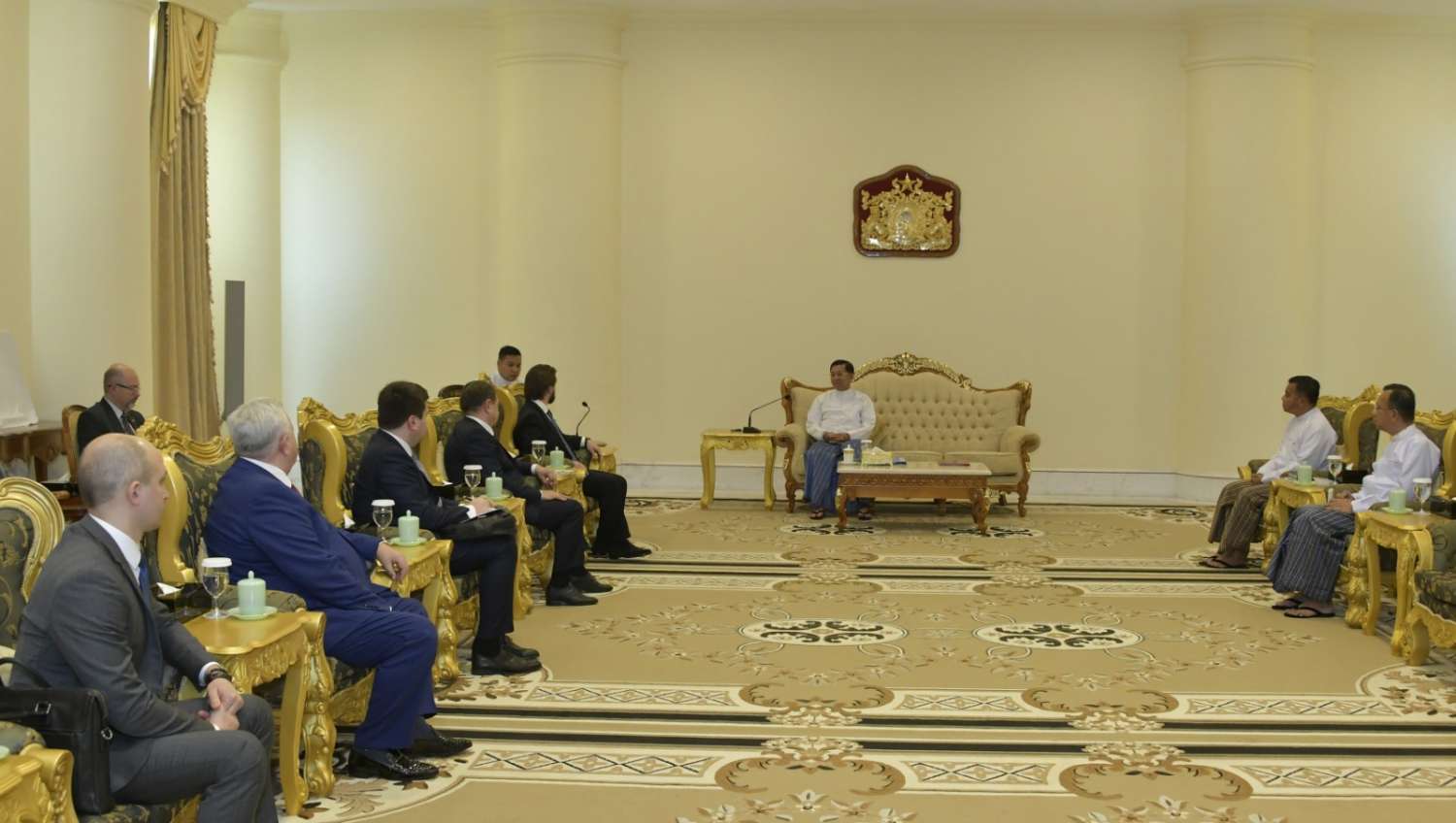 နိုင်ငံတော်စီမံအုပ်ချုပ်ရေးကောင်စီဥက္ကဋ္ဌ နိုင်ငံတော်ဝန်ကြီးချုပ် ဗိုလ်ချုပ်မှူးကြီးမင်းအောင်လှိုင်ထံ ရုရှားဖက်ဒေရေးရှင်းနိုင်ငံ၊ ရော့စ်ကွန်ဂရက်ရင်းနှီးမြှုပ်နှံမှု ရန်ပုံငွေအဖွဲ့မှ ညွှန်ကြားရေးမှူး SHATIROV Alexander Sergeevich ဦးဆောင်သည့် ကိုယ်စားလှယ်အဖွဲ့က ယနေ့မွန်းလွဲပိုင်းတွင် နေပြည်တော်ရှိ နိုင်ငံတော်စီမံအုပ်ချုပ်ရေးကောင်စီဥက္ကဋ္ဌရုံး ဧည့်ခန်းမ၌ လာရောက်ဂါရဝပြု တွေ့ဆုံသည်။