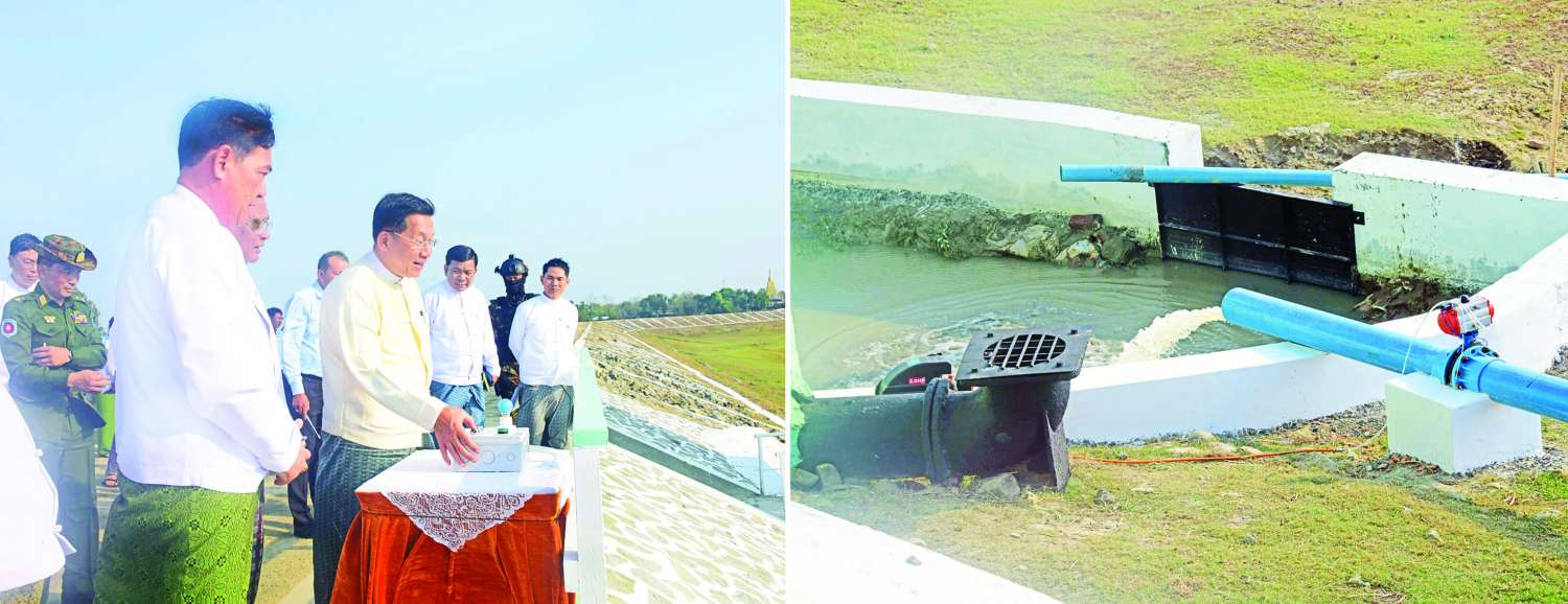 ထို့နောက် နိုင်ငံတော်စီမံအုပ်ချုပ်ရေး ကောင်စီဥက္ကဋ္ဌ နိုင်ငံတော်ဝန်ကြီးချုပ်သည် သင်္ဂနက်ဆည်နှင့် ကန်တော်ကြီးသို့ မြေအောက်ရေအကူပိုက်လိုင်းမှ ရေသွယ်တန်းမှုကို စက်ခလုတ်နှိပ်၍ စတင်ဖွင့်လှစ်ပေးပြီး ရေရရှိမှုအခြေအနေကို ကြည့်ရှုအားပေးသည်။