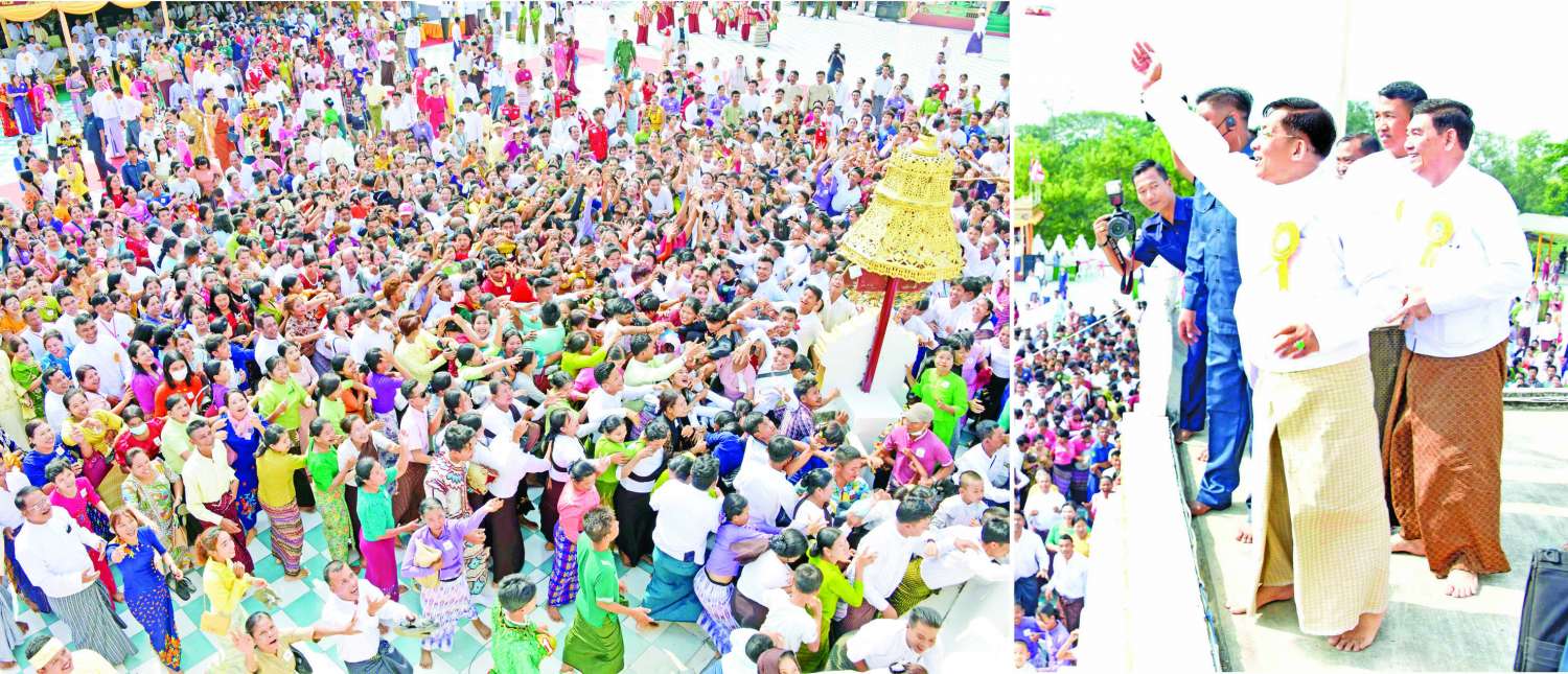 အဆိုပါ အခမ်းအနားသို့ နိုင်ငံတော်စီမံအုပ်ချုပ်ရေးကောင်စီဥက္ကဋ္ဌ နိုင်ငံတော်ဝန်ကြီးချုပ် ဗိုလ်ချုပ်မှူးကြီး မင်းအောင်လှိုင်၊ ဇနီးဒေါ်ကြူကြူလှ၊ ကောင်စီတွဲဖက်အတွင်းရေးမှူး ဒုတိယဗိုလ်ချုပ်ကြီး ရဲဝင်းဦးနှင့် ဇနီး၊ ကောင်စီဝင်များနှင့်ဇနီးများ၊ ပြည်ထောင်စုဝန်ကြီးများ၊ ရခိုင်ပြည်နယ်ဝန်ကြီးချုပ်နှင့်ဇနီး၊ ညှိနှိုင်းကွပ်ကဲရေးမှူး (ကြည်း၊ ရေ၊ လေ)နှင့် ဇနီး၊ ကာကွယ်ရေးဦးစီးချုပ်ရုံးမှ တပ်မတော်အရာရှိကြီးများနှင့် ဇနီးများ၊ အနောက်ပိုင်းတိုင်းစစ်ဌာနချုပ်တိုင်းမှူး၊ ဖိတ်ကြားထားသည့် ဧည့်သည်တော်များ၊ အရာရှိ၊ စစ်သည်၊ မိသားစုများ၊ ဝတ်အသင်းအဖွဲ့များနှင့် ဒေသခံပြည်သူများ တက်ရောက်ကြသည်။