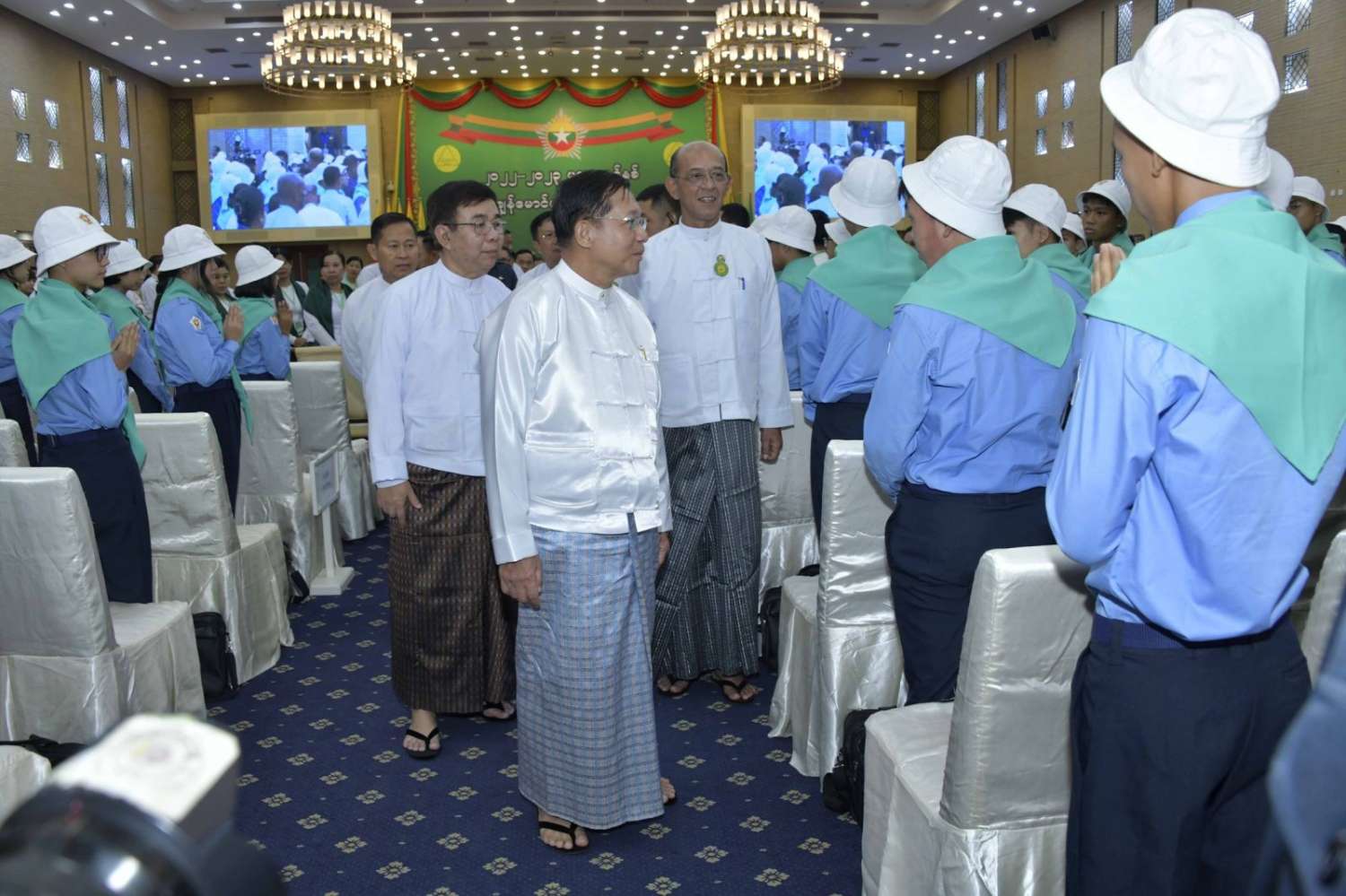 နိုင်ငံတော်စီမံအုပ်ချုပ်ရေးကောင်စီဥက္ကဋ္ဌ နိုင်ငံတော်ဝန်ကြီးချုပ် ဗိုလ်ချုပ်မှူးကြီး မင်းအောင်လှိုင်သည် ၂၀၂၂-၂၀၂၃ ပညာသင်နှစ် လူရည်ချွန်မောင်မယ်များအား ယနေ့နံနက်ပိုင်းတွင် နေပြည်တော်ရှိ မြန်မာအပြည်ပြည်ဆိုင်ရာကွန်ဗင်းရှင်းဗဟိုဌာန-၂ (MICC-II)၌ တွေ့ဆုံ၍ ဩဝါဒစကားမြွက်ကြားသည်။