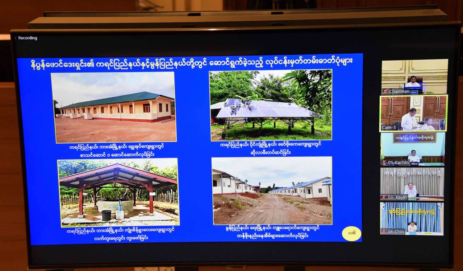 နိုင်ငံတော်စီမံအုပ်ချုပ်ရေး‌ကောင်စီ တာဝန်ယူချိန်မှစပြီး တိုင်းပြည်သာယာဝပြောရေးနှင့် စားရေရိက္ခာဖူလုံရေး၊ ပြည်သူလူထုတစ်ရပ်လုံးလူမှုစီးပွားဘဝဖွံ့ဖြိုး တိုးတက်စေရေး၊ တစ်နိုင်ငံလုံး ထာဝရငြိမ်းချမ်းရေးရရှိရေး၊ ပြည်ထောင်စုတစ်ဝန်းလမ်းပန်းဆက်သွယ်မှုလုံခြုံချောမွေ့စေရေးတို့ကို အလေးထားပြီး အကောင်အထည်ဖော်ဆောင်ရွက်လျက်ရှိပါကြောင်း၊ နယ်စပ်ဒေသများ၏ ဖွံ့ဖြိုးတိုးတက်ရေးလုပ်ငန်းများဖြစ်သည့် ပညာရေး၊ ကျန်းမာရေး၊ လမ်းပန်းဆက်သွယ်ရေး၊ စိုက်ပျိုး/မွေးမြူရေးနှင့် စီးပွားရေးကဏ္ဍများ တိုးတက်လာစေရန်အတွက် လူမှုစီးပွားဘဝအခြေခံအဆောက်အအုံများနှင့် လူ့စွမ်းအားအရင်းအမြစ် ဖွံ့ဖြိုးတိုးတက်ရေးလုပ်ငန်းစဉ်များအပြင် မူးယစ်ဆေးဝါးပပျောက်ရေးအတွက်လည်း စီမံကိန်းများရေးဆွဲအကောင်အထည်ဖော် ဆောင်ရွက်လျက်ရှိပါကြောင်း။