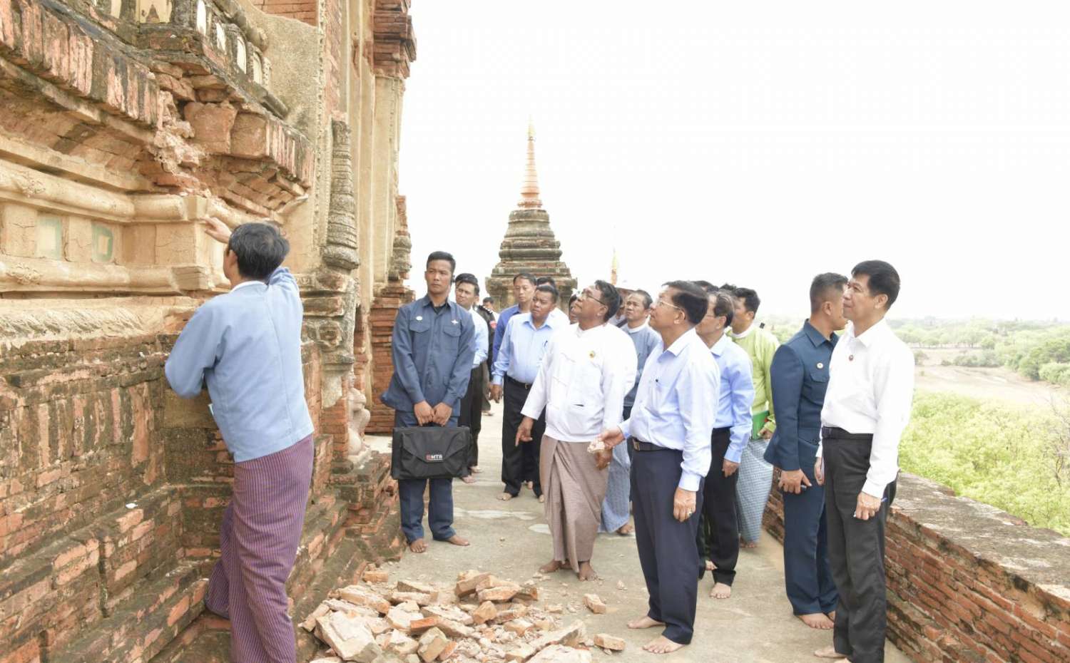 နိုင်ငံတော်စီမံအုပ်ချုပ်ရေးကောင်စီဥက္ကဋ္ဌ နိုင်ငံတော်ဝန်ကြီးချုပ် ဗိုလ်ချုပ်မှူးကြီး မင်းအောင်လှိုင်သည် မေ ၁၅ ရက်ညနေပိုင်းတွင် ဇနီးဒေါ်ကြူကြူလှ၊ ကောင်စီတွဲဖက် အတွင်းရေးမှူး ဒုတိယဗိုလ်ချုပ်ကြီး ရဲဝင်းဦးနှင့် ဇနီး၊ ခရီးစဉ်တွင် လိုက်ပါလာသည့် အဖွဲ့ဝင်များ လိုက်ပါ၍ သဘာဝဘေးအန္တရာယ်ဖြစ်ပေါ်မှုကြောင့် ရေဝင်၊ ရေဝပ်မှုနှင့် ထိခိုက်ပျက်စီးမှုများ ဖြစ်ပေါ်ခဲ့သည့် ပုဂံရှေးဟောင်းယဉ်ကျေးမှုနယ်မြေသို့ သွားရောက်ကြည့်ရှုပြီး လိုအပ်သည်များ လမ်းညွှန်မှာကြားသည်။
