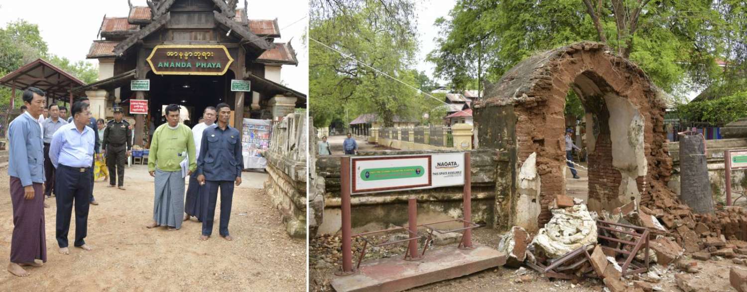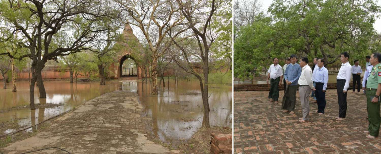 မန္တလေးတိုင်းဒေသကြီး၊ ညောင်ဦးခရိုင်၊ ပုဂံရှေးဟောင်း ယဉ်ကျေးမှုနယ်မြေအတွင်း သဘာဝဘေးအန္တရာယ်ကျရောက်ခဲ့မှုကြောင့် ရွှေစည်းခုံစေတီ၊ အာနန္ဒာဘုရား၊ ဓမ္မရံကြီးဘုရား၊ စူဋ္ဌာမဏိဘုရား၊ ဓမ္မရာဇက ဘုရား၊ ဆင်ဖြူရှင်ကွန်းပလက်၊ ခေမင်္ဂ ဘုရား၊ သပိတ်မှောက်ဘုရား၊ ထီးလိုမင်းလိုဘုရား၊ လေးမျက်နှာဘုရား၊ ဆင်ပေါင်းအုတ်ကျောင်း၊ ဓမ္မရာဇကအနီးရှိဘုရား၊ ပုဂံမျှော်ဘုရား၊ ရွာဟောင်းကြီးဘုရား၊ ရွှေနန်းရင် တောဘုရားတို့၌ ရေဝင်ရောက်မှုများ ဖြစ်ပေါ်ခဲ့ပြီး ရှေးဟောင်းဘုရား/ အဆောက်အအုံ ၈ ခုတို့တွင် ထိခိုက်ပျက်စီးမှု အနည်းငယ်ဖြစ်ပေါ်ခဲ့ကြောင်းနှင့် ရှေးလက်ရာမပြတ် အမြန်ပြန်လည် ပြုပြင်ထိန်းသိမ်းနိုင်ရေး ဆောင်ရွက်လျက်ရှိကြောင်း သတင်းရရှိသည်။