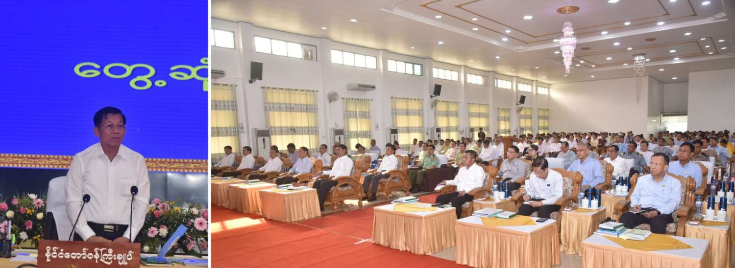 ဦးစွာ တိုင်းဒေသကြီးဝန်ကြီးချုပ်က ပဲခူးတိုင်းဒေသကြီးအတွင်း အသေးစား၊ အငယ်စားနှင့် အလတ်စား စီးပွားရေးလုပ်ငန်း(MSME)များ ဖွံ့ဖြိုး တိုးတက်ရေး ဆောင်ရွက်လျက်ရှိမှု၊ ပြည်တွင်း၊ ပြည်ပမှ ရင်းနှီးမြှုပ်နှံမှုလုပ်ငန်းများ ဆောင်ရွက်လျက်ရှိမှု၊ အကြီးစား၊ အလတ်စားနှင့် အငယ်စားစက်မှု လုပ်ငန်းများ ဆောင်ရွက်လျက်ရှိမှုအခြေအနေများနှင့်ပတ်သက်၍ ရှင်းလင်းတင်ပြသည်။