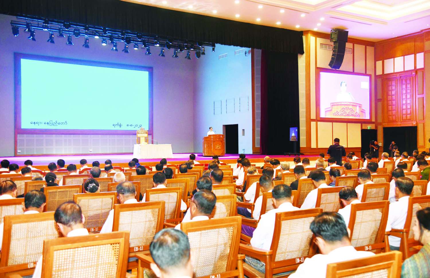 နိုင်ငံတော်စီမံအုပ်ချုပ်ရေးကောင်စီဥက္ကဋ္ဌ နိုင်ငံတော်ဝန်ကြီးချုပ် ဗိုလ်ချုပ်မှူးကြီး မင်းအောင်လှိုင်သည် ပြည်ထောင်စုအဆင့်ပုဂ္ဂိုလ်များနှင့် ပြည်ထောင်စုဝန်ကြီးဌာနများမှ တာဝန်ရှိသူများအား ယနေ့နံနက်ပိုင်းတွင် နေပြည်တော်ရှိ နိုင်ငံတော်စီမံအုပ်ချုပ်ရေးကောင်စီဥက္ကဋ္ဌရုံး ငုရွှေဝါခန်းမ၌တွေ့ဆုံ အမှာစကားပြောကြားသည်။