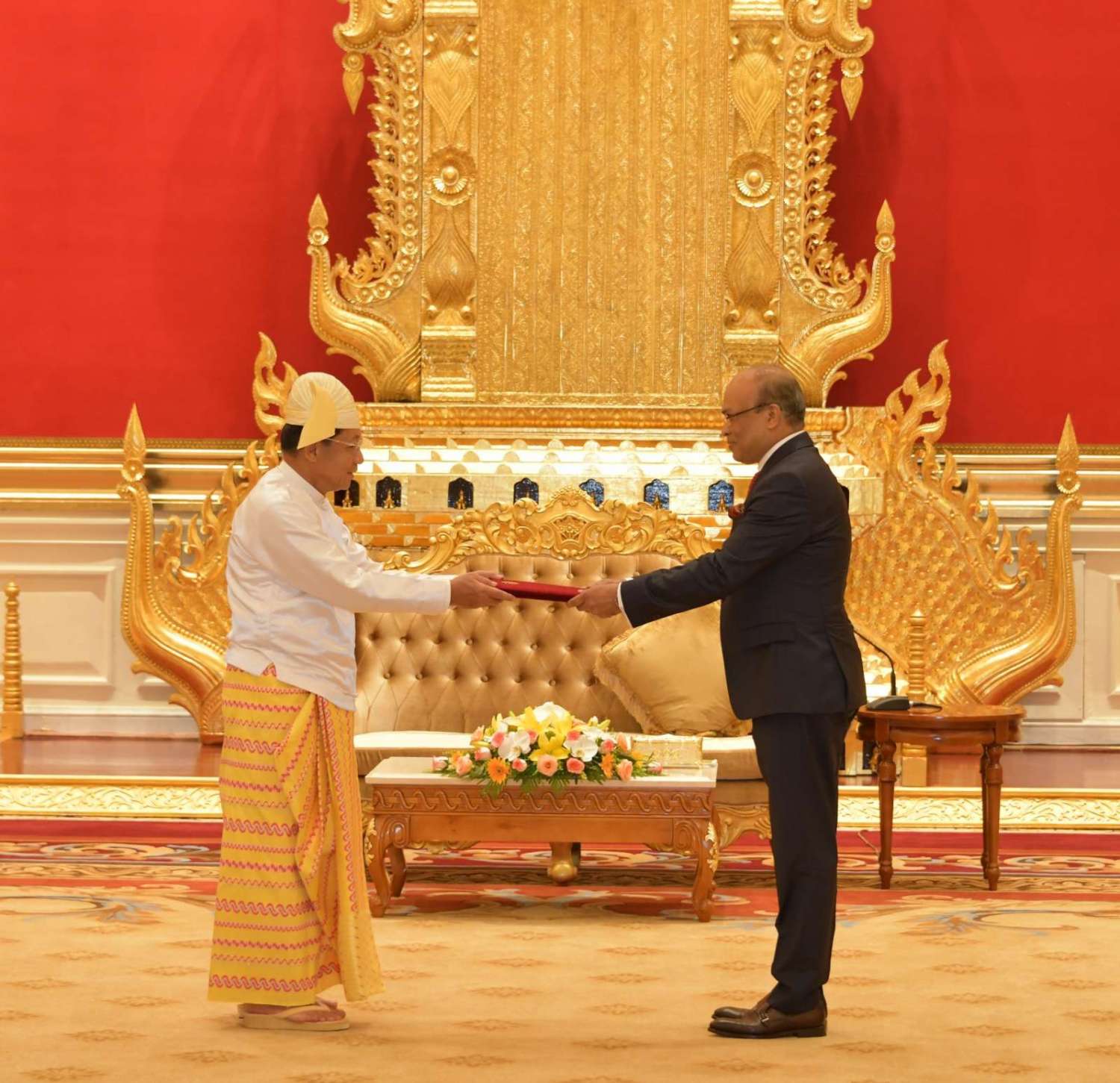 နိုင်ငံတော်စီမံအုပ်ချုပ်ရေးကောင်စီဥက္ကဋ္ဌ နိုင်ငံတော်ဝန်ကြီးချုပ် ဗိုလ်ချုပ်မှူးကြီး မင်းအောင်လှိုင်ထံ မြန်မာနိုင်ငံဆိုင်ရာ ဘင်္ဂလားဒေ့ရှ်နိုင်ငံ သံအမတ်ကြီးအဖြစ်ခန့်အပ်ရန် သဘောတူညီပြီးဖြစ်သော သံအမတ်ကြီး H.E. Dr. Md. Monwar Hossain သည် ယနေ့နံနက် ၁၀ နာရီတွင် နေပြည်တော်ရှိ နိုင်ငံတော်စီမံအုပ်ချုပ်ရေးကောင်စီဥက္ကဋ္ဌရုံး၊ သံတမန်ဆောင်ဧည့်ခန်းမ၌ ၎င်း၏သံအမတ်ခန့်အပ်လွှာကိုပေးအပ်သည်။