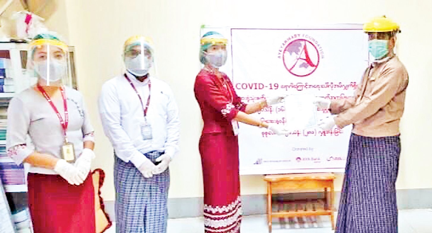 ဧရာဝတီဖောင်ဒေးရှင်း တာဝန်ရှိသူများသည် ကိုဗစ်-၁၉ ရောဂါ ကာကွယ်ကုသရေး လုပ်ငန်းစဉ်များ ဆောင်ရွက် နေသည့် ရခိုင်ပြည်နယ် စစ်တွေမြို့ရှိ စစ်တွေပြည်သူ့ဆေးရုံကြီးသို့ ယမန်နေ့ က ရောဂါကာကွယ် ကုသရေး ပစ္စည်းများနှင့် အလှူငွေများ သွားရောက်လှူဒါန်းခဲ့သည်။