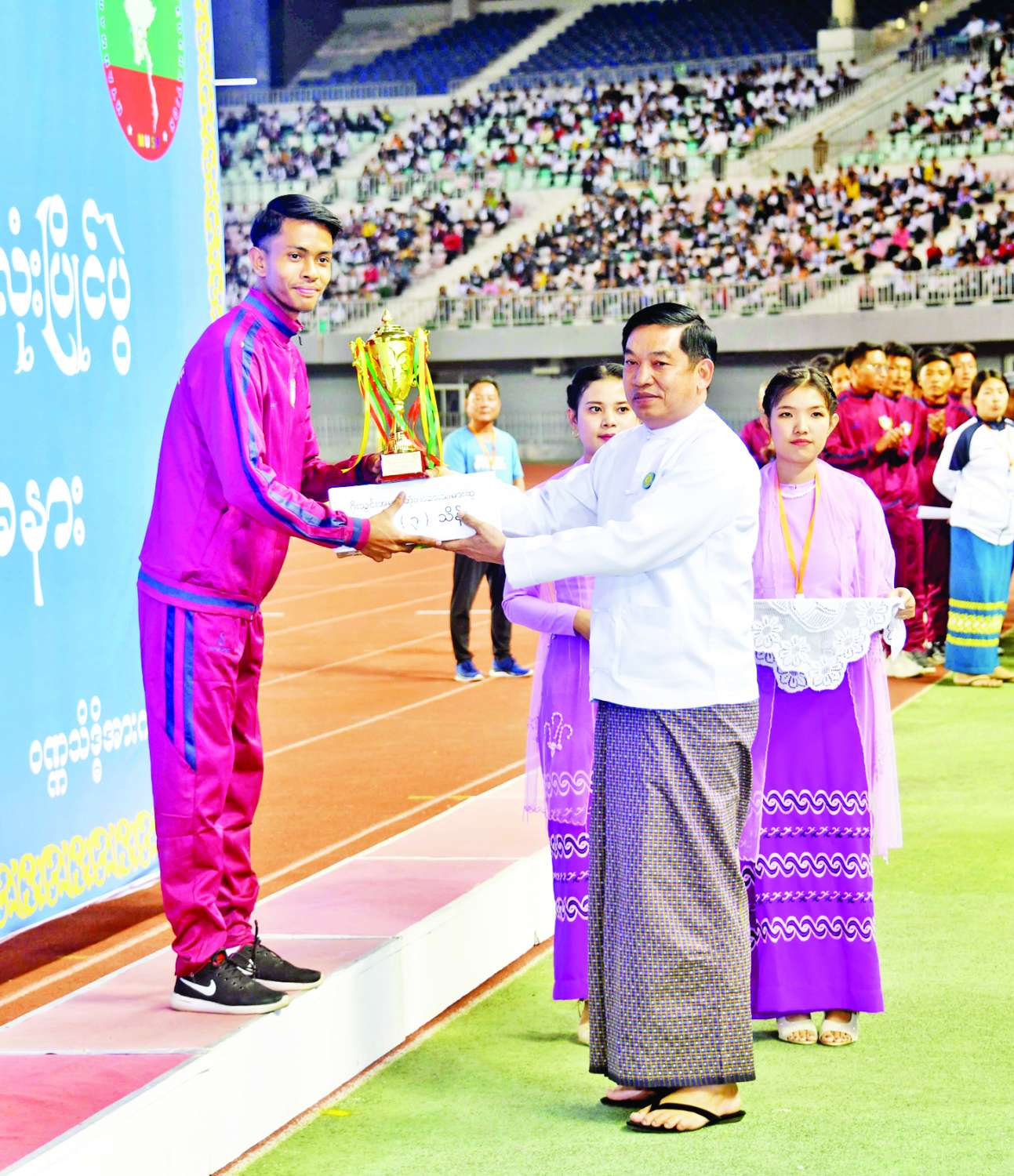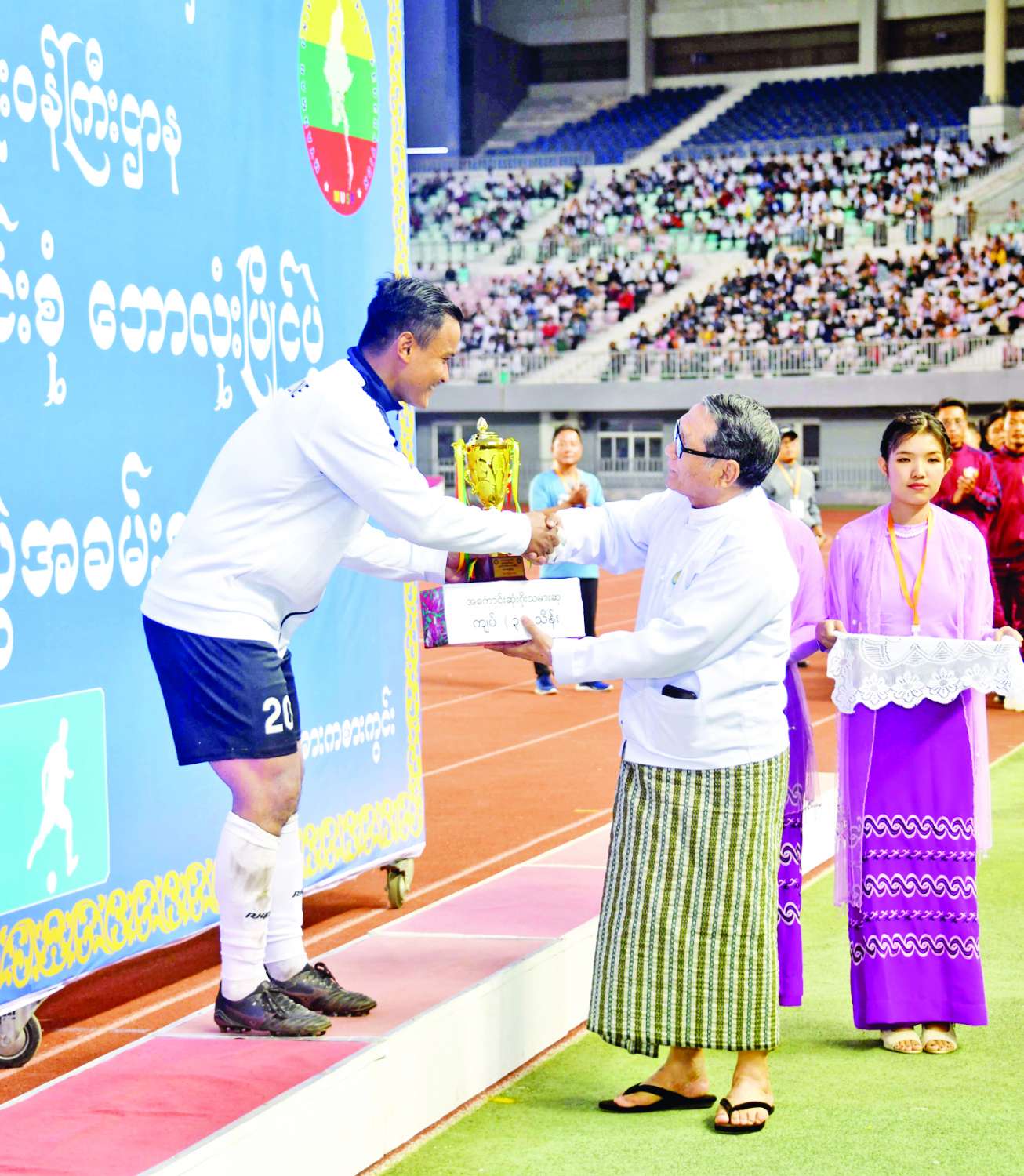 ယင်းနောက် နိုင်ငံတော်စီမံအုပ်ချုပ်ရေးကောင်စီဥက္ကဋ္ဌ နိုင်ငံတော်ဝန်ကြီးချုပ် ဗိုလ်ချုပ်မှူးကြီး မင်းအောင်လှိုင်က ပထမဆုရရှိသည့် မော်လမြိုင်ဇုန်အသင်းအား ဂုဏ်ပြုဆုငွေများနှင့် တံခွန်စိုက်ဆုဖလားကို ပေးအပ်ချီးမြှင့်သည်။