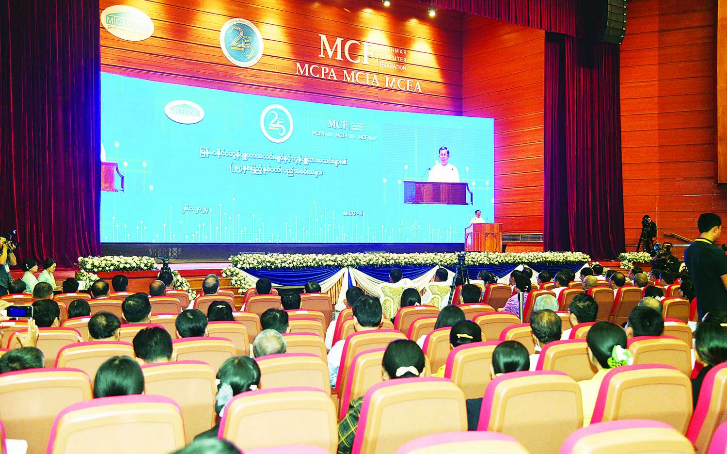 မြန်မာနိုင်ငံကွန်ပျူတာအသင်းချုပ်နှင့် ကွန်ပျူတာအသင်းများ၏ ၂၅ နှစ်ပြည့်  ငွေရတုအထိမ်းအမှတ် ဖွင့်ပွဲအခမ်းအနားကျင်းပ နိုင်ငံတော်စီမံအုပ်ချုပ်ရေးကောင်စီဥက္ကဋ္ဌ နိုင်ငံတော်ဝန်ကြီးချုပ် ဗိုလ်ချုပ်မှူးကြီး မင်းအောင်လှိုင် တက်ရောက်ဖွင့်လှစ်ပေး