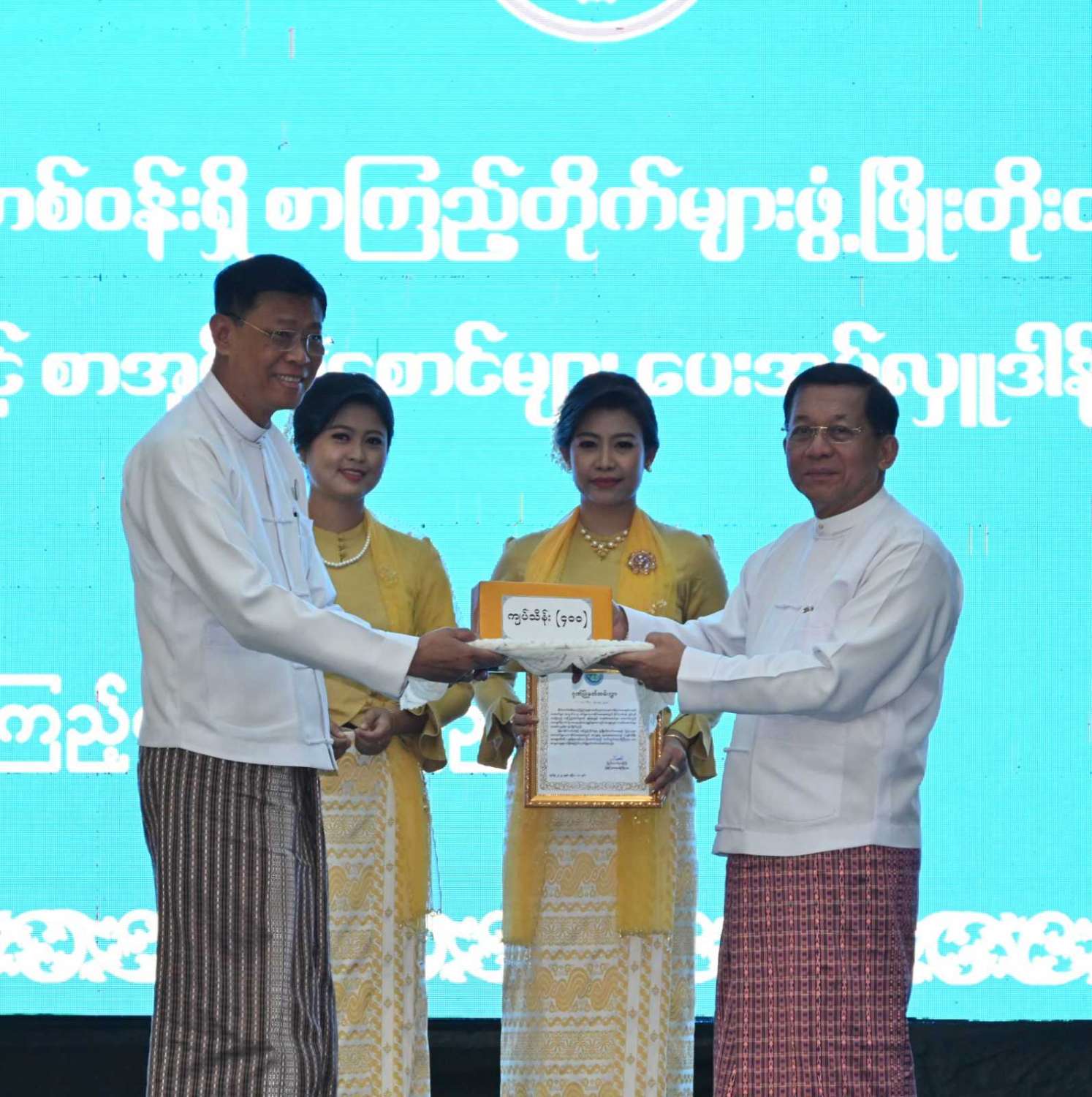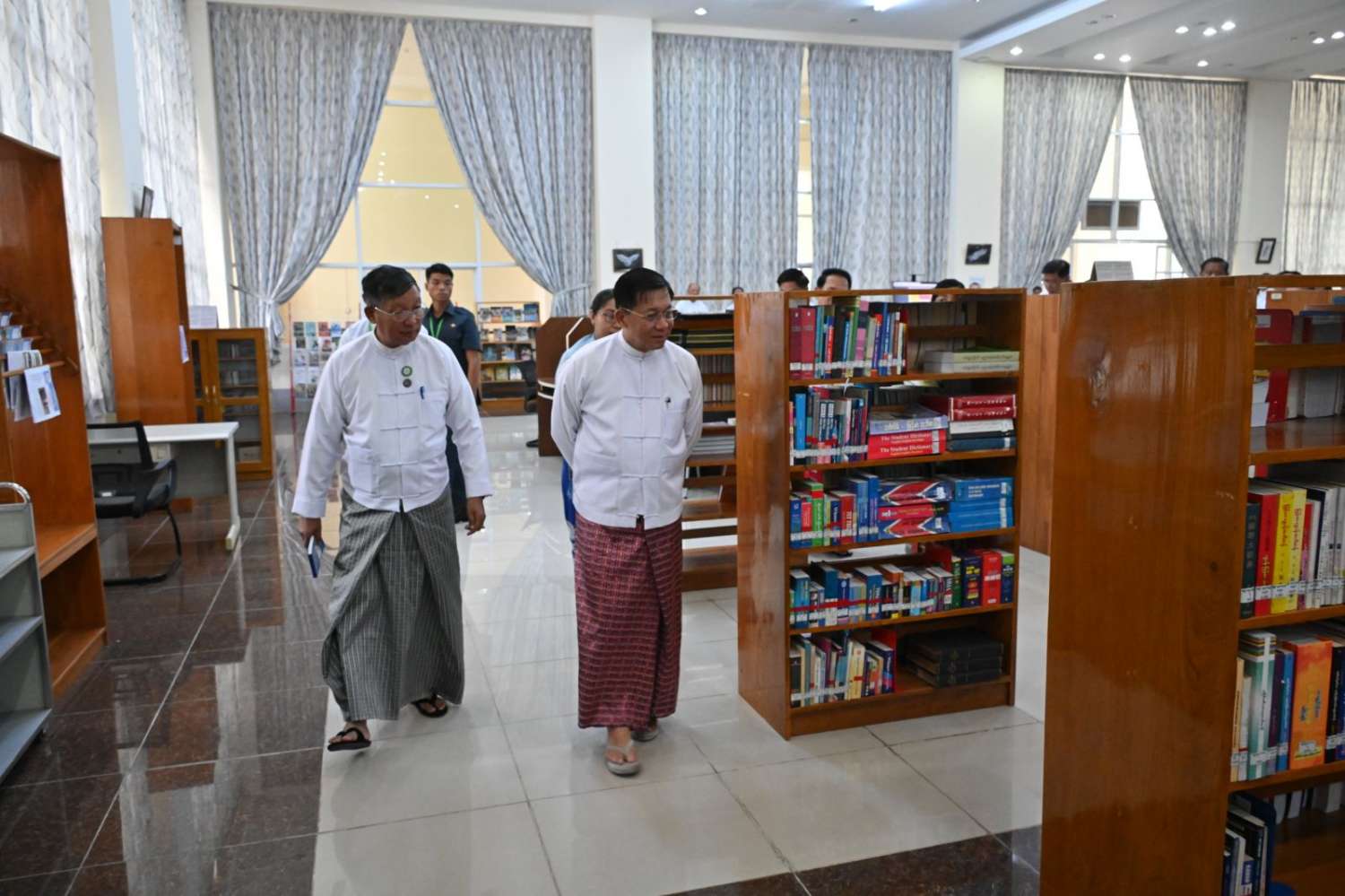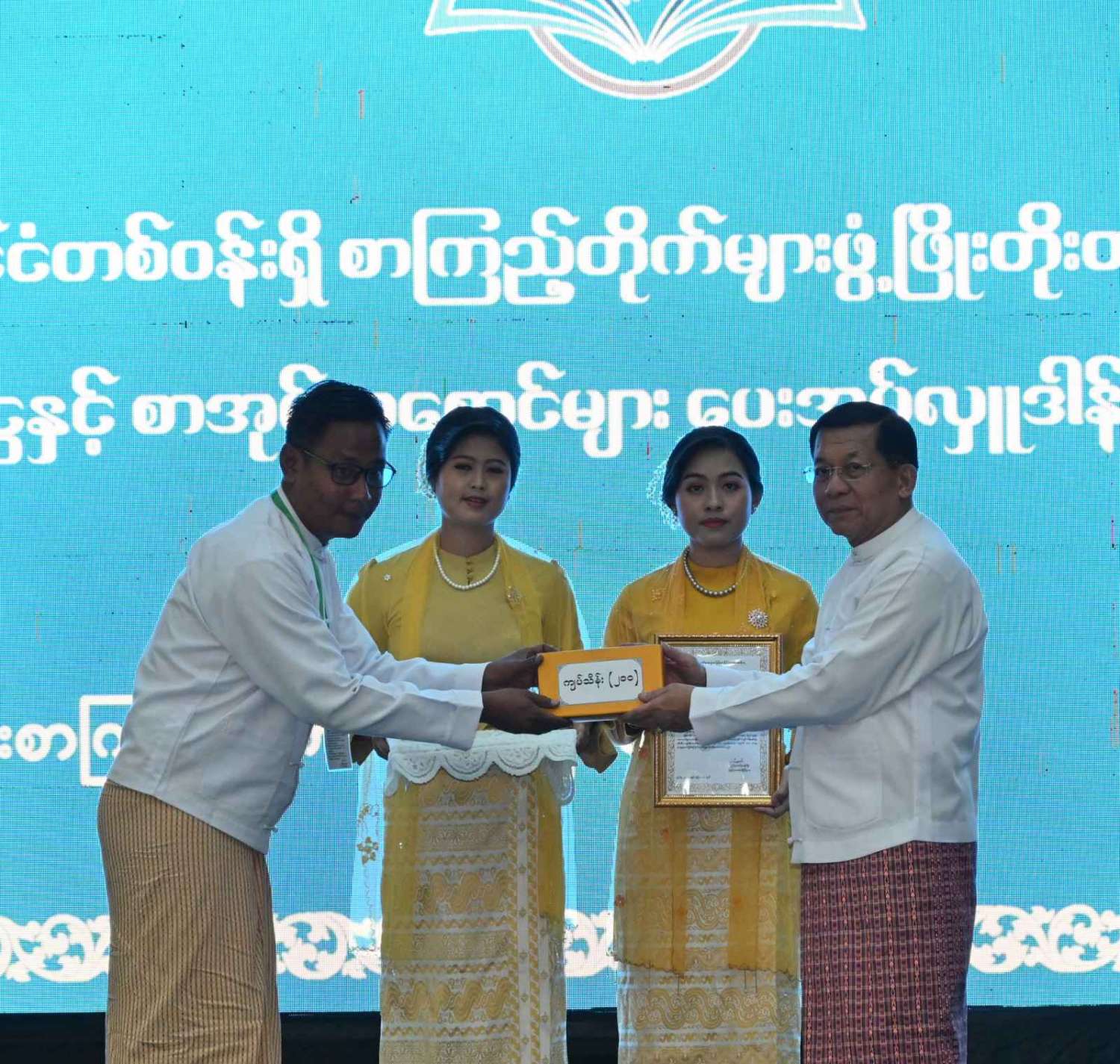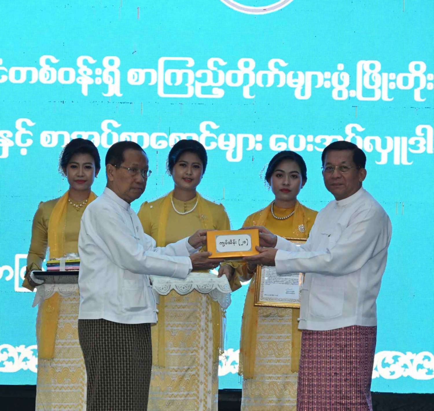 မြန်မာနိုင်ငံတစ်ဝန်းလုံးရှိ စာကြည့်တိုက်များ ဖွံ့ဖြိုးတိုးတက်ရေးအတွက် အလှူငွေနှင့် စာအုပ်စာစောင်များ ပေးအပ်လှူဒါန်းပွဲအခမ်းအနားကို ယနေ့နံနက်ပိုင်းတွင် နေပြည်တော်ရှိ အမျိုးသားစာကြည့်တိုက်၌ ကျင်းပပြုလုပ်ရာ နိုင်ငံတော်စီမံအုပ်ချုပ်ရေးကောင်စီဥက္ကဋ္ဌ နိုင်ငံတော်ဝန်ကြီးချုပ် ဗိုလ်ချုပ်မှူးကြီး မင်းအောင်လှိုင် တက်ရောက်သည်။