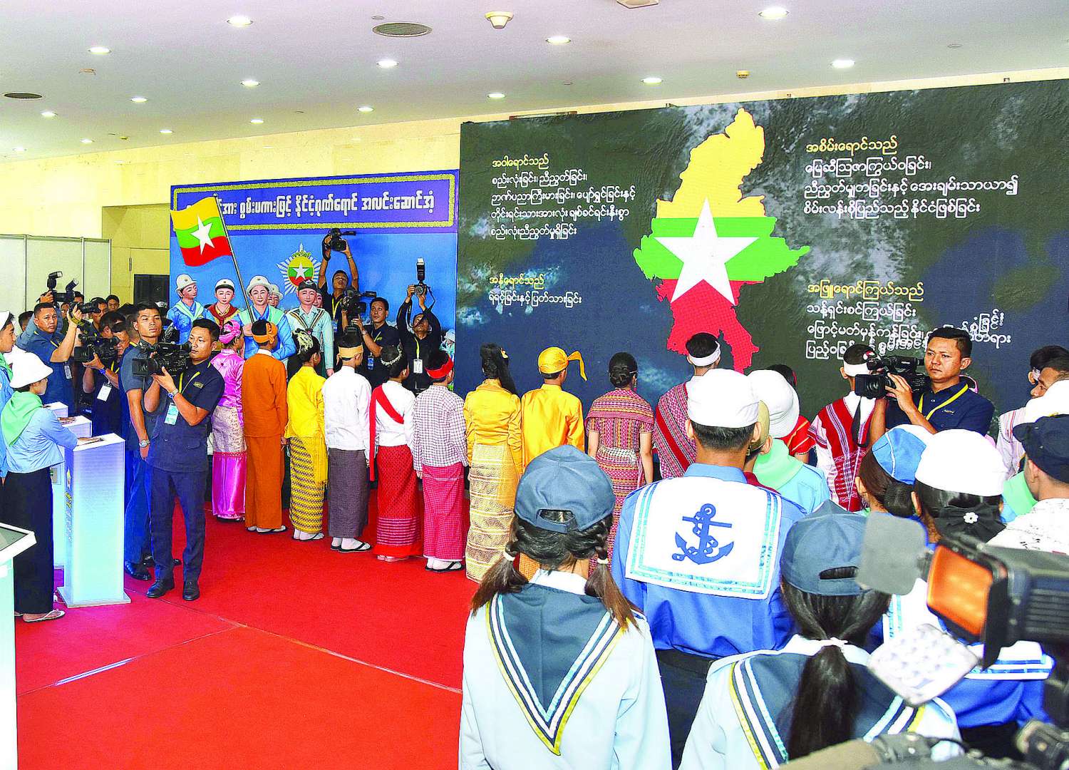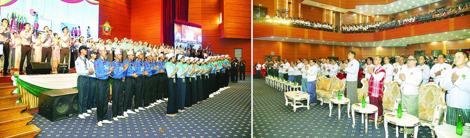 ယင်းနောက် သာသနာရေးနှင့် ယဉ်ကျေးမှုဝန်ကြီးဌာန အနုပညာဦးစီးဌာနမှ အနုပညာရှင်များက “အလင်းတစ်ခေတ်၏ အရင်းအမြစ်များကို မွေးဖွားခြင်း” ကဇာတ်ဖြင့်လည်းကောင်း၊ ပြန်ကြားရေးဝန်ကြီးဌာန မြန်မာ့အသံနှင့်ရုပ်မြင်သံကြားမှ အနုပညာရှင်များ၊ သာသနာရေးနှင့် ယဉ်ကျေးမှုဝန်ကြီးဌာန အနုပညာဦးစီးဌာနမှ အနုပညာရှင်များနှင့် လူရည်ချွန်မောင်မယ်များ၊ ကင်းထောက်လူငယ်၊ ကြက်ခြေနီလူငယ်၊ ရေကြောင်းလူငယ်နှင့် လေကြောင်းလူငယ်များက “လူငယ်စွမ်းရည်” တေးသီချင်းဖြင့်လည်းကောင်း စုပေါင်းသီဆို ဖျော်ဖြေတင်ဆက်ကြသည်။