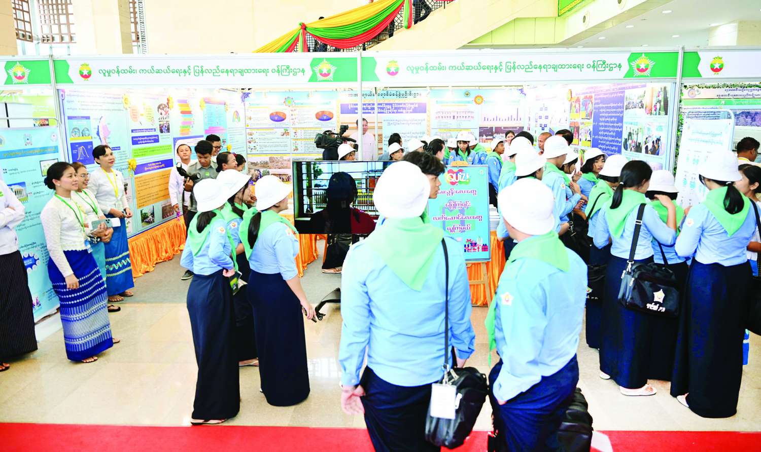 ထို့နောက် နိုင်ငံတော်စီမံအုပ်ချုပ်ရေးကောင်စီဥက္ကဋ္ဌ နိုင်ငံတော်ဝန်ကြီးချုပ်နှင့် အဖွဲ့ဝင်များ၊ အခမ်းအနားတက်ရောက်လာကြသူများနှင့် ထူးချွန်လူငယ်မောင်မယ်များသည် ခင်းကျင်းပြသထားသည့် ပြခန်းများအတွင်း စိတ်ပါဝင်စားစွာဖြင့် လှည့်လည်ကြည့်ရှုကြသည်။