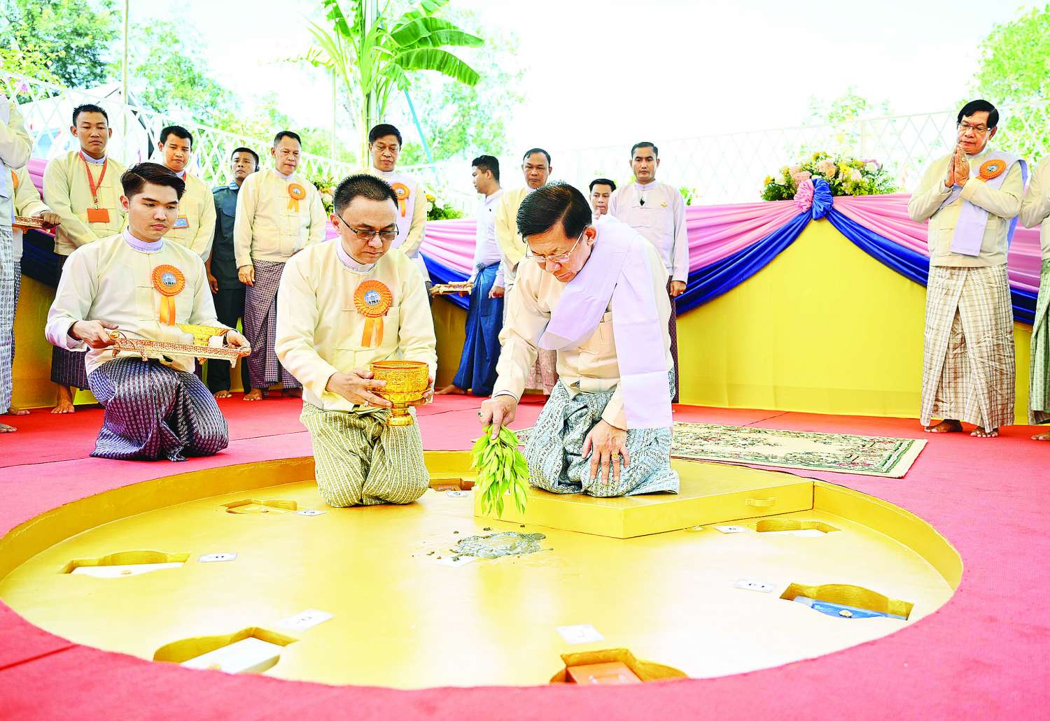ရန်ကုန်တိုင်းဒေသကြီး၊ မရမ်းကုန်းမြို့နယ်ရှိ သာသနာရေးနှင့်ယဉ်ကျေးမှုဝန်ကြီးဌာန၊ အပြည်ပြည်ဆိုင်ရာ ထေရဝါဒဗုဒ္ဓသာသနာပြုတက္ကသိုလ်၊ တက္ကသိုလ်ဘွဲ့နှင်းသဘင်ခန်းမဆောင်ကြီး ဆောက်လုပ်ရန်အတွက် ရတနာအုတ်မြစ်တော်စီမဟာမင်္ဂလာအခမ်းအနားကို ယနေ့နံနက်ပိုင်းတွင် ကျင်းပပြုလုပ်သည်။