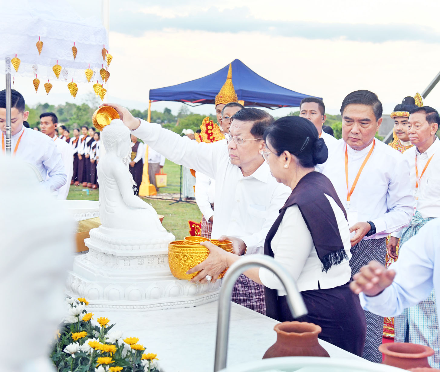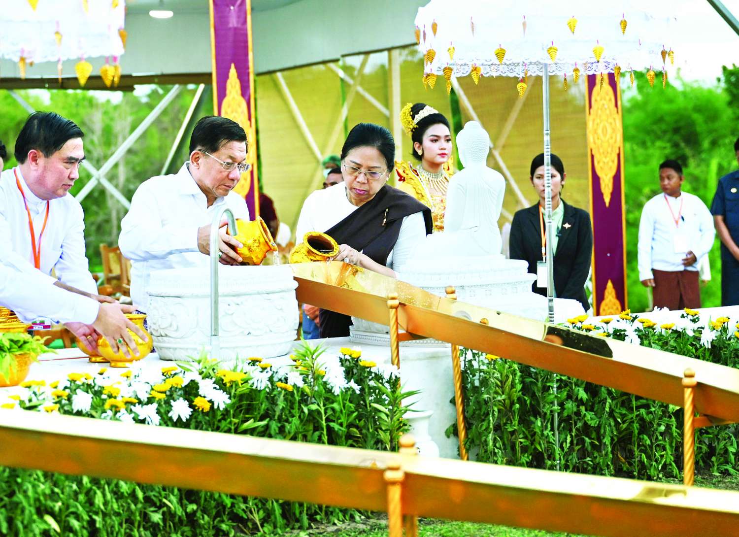 ဦးစွာ နိုင်ငံတော်စီမံအုပ်ချုပ်ရေးကောင်စီဥက္ကဋ္ဌ နိုင်ငံတော်ဝန်ကြီးချုပ်နှင့်ဇနီးတို့သည် မာရဝိဇယဗုဒ္ဓရုပ်ပွားတော်မြတ်ကြီအား ပန်း၊ ရေချမ်းနှင့် ဆီမီးများ ကပ်လှူပူဇော်ပြီး ဖူးမြော်ကြည်ညိုကြသည်။