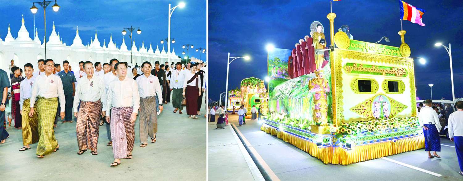 ထို့နောက် နိုင်ငံတော်စီမံအုပ်ချုပ်ရေးကောင်စီဥက္ကဋ္ဌ နိုင်ငံတော်ဝန်ကြီးချုပ်နှင့်ဇနီးတို့သည် ဘုရားဖူးလာပြည်သူများအား ရင်းရင်းနှီးနှီးနှုတ်ဆက်ကြပြီး ကဆုန်လပြည့် ဗုဒ္ဓနေ့သရုပ်ပြယာဉ်များကို လှည့်လည်ကြည့်ရှုခဲ့ကြသည်။