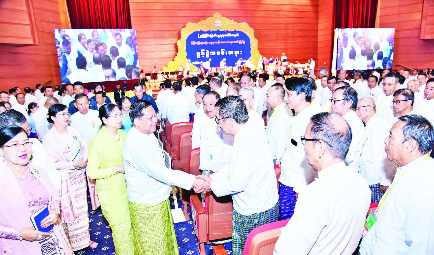 အခမ်းအနားအပြီးတွင် နိုင်ငံတော်စီမံအုပ်ချုပ်ရေးကောင်စီဥက္ကဋ္ဌ နိုင်ငံတော်ဝန်ကြီးချုပ်နှင့်ဇနီး၊ အဖွဲ့ဝင်များသည် အကဲဖြတ်ပညာရှင်များကို ရင်းရင်းနှီးနှီး လိုက်လံနှုတ်ဆက်သည်။