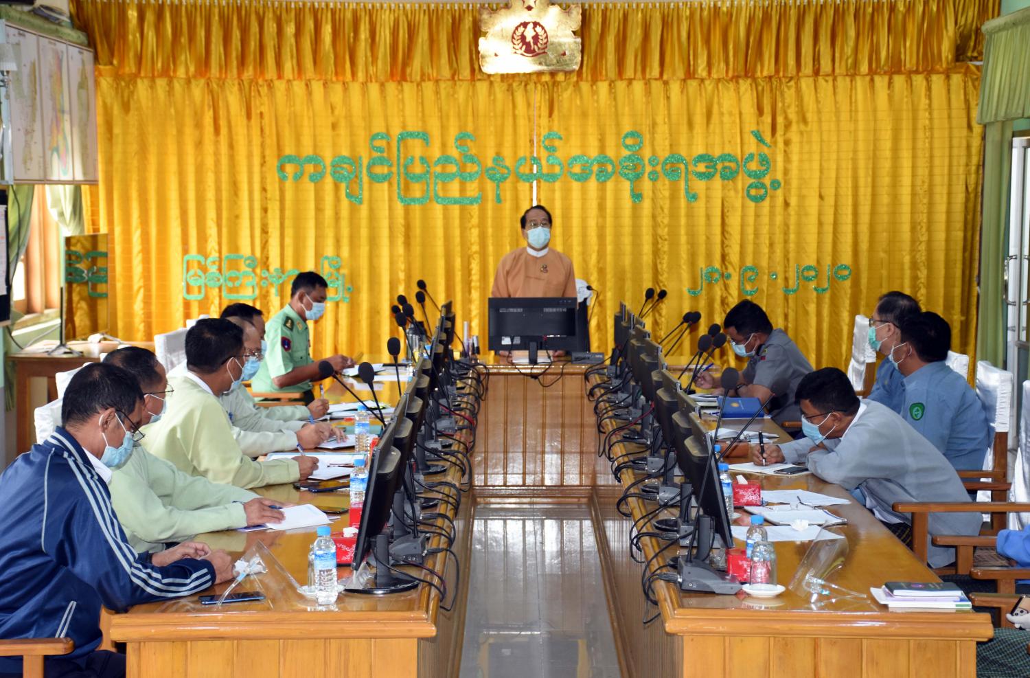 ကချင်ပြည်နယ်အတွင်း ကိုဗစ်-၁၉ ကပ်ရောဂါကာကွယ်၊ ထိန်းချုပ်၊ ကုသရေးလုပ်ငန်းများ စနစ်တကျဖြင့် ဌာနဆိုင်ရာအချင်းချင်း ပူးပေါင်းဆောင်ရွက်နိုင်ရေးအတွက် ညှိနှိုင်းအစည်းအဝေးကို ပြည်နယ်ဝန်ကြီးချုပ် ဦးဆောင်၍ ယမန်နေ့နံနက်ပိုင်းတွင် ပြည်နယ်အစိုးရအဖွဲ့ရုံး၊ အစည်းအဝေးခန်းမ၌ ကျင်းပပြုလုပ်ခဲ့သည်။