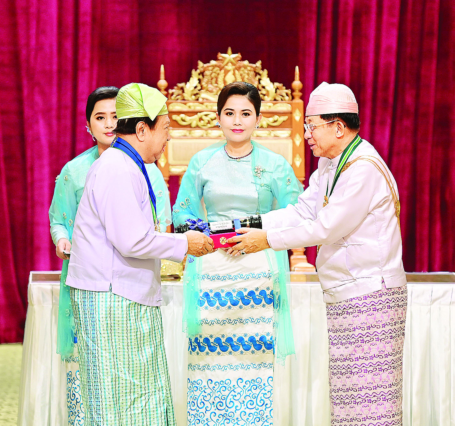 ဂုဏ်ထူးဆောင်ဘွဲ့၊ တံဆိပ်ချီးမြှင့်အပ်နှင်းရေးဆိုင်ရာ လုပ်ငန်းများကို ဂုဏ်ထူးဆောင်ဘွဲ့များ၊ ဂုဏ်ထူးဆောင်တံဆိပ်များဆိုင်ရာ ပြဋ္ဌာန်းချက်တွေနှင့်အညီ အဆင့်ဆင့် ထောက်ခံတင်ပြချက်များအပေါ်တွင် စနစ်တကျစိစစ်ရွေးချယ်ပြီး အမှန်တကယ်ဂုဏ်ပြုချီးမြှင့်ထိုက်သူများကိုသာ ထိုက်ထိုက်တန်တန် ချီးမြှင့်အပ်နှင်းခဲ့ခြင်းဖြစ်သဖြင့် ဘွဲ့ခံပုဂ္ဂိုလ်များနဲ့ မိသားစုဝင်များအတွက် အထူးဂုဏ်ယူဝမ်းမြောက်မိသည်ကို ပြောကြားလိုကြောင်း။