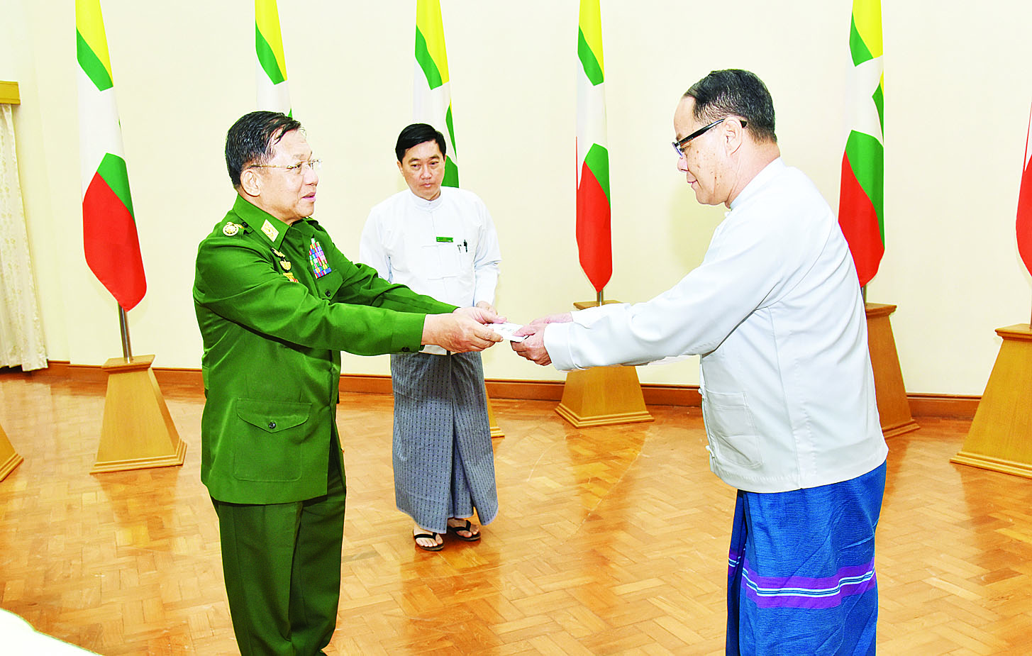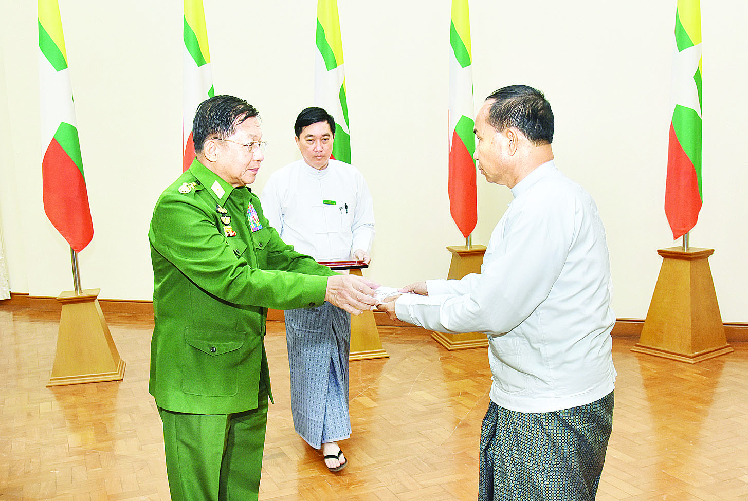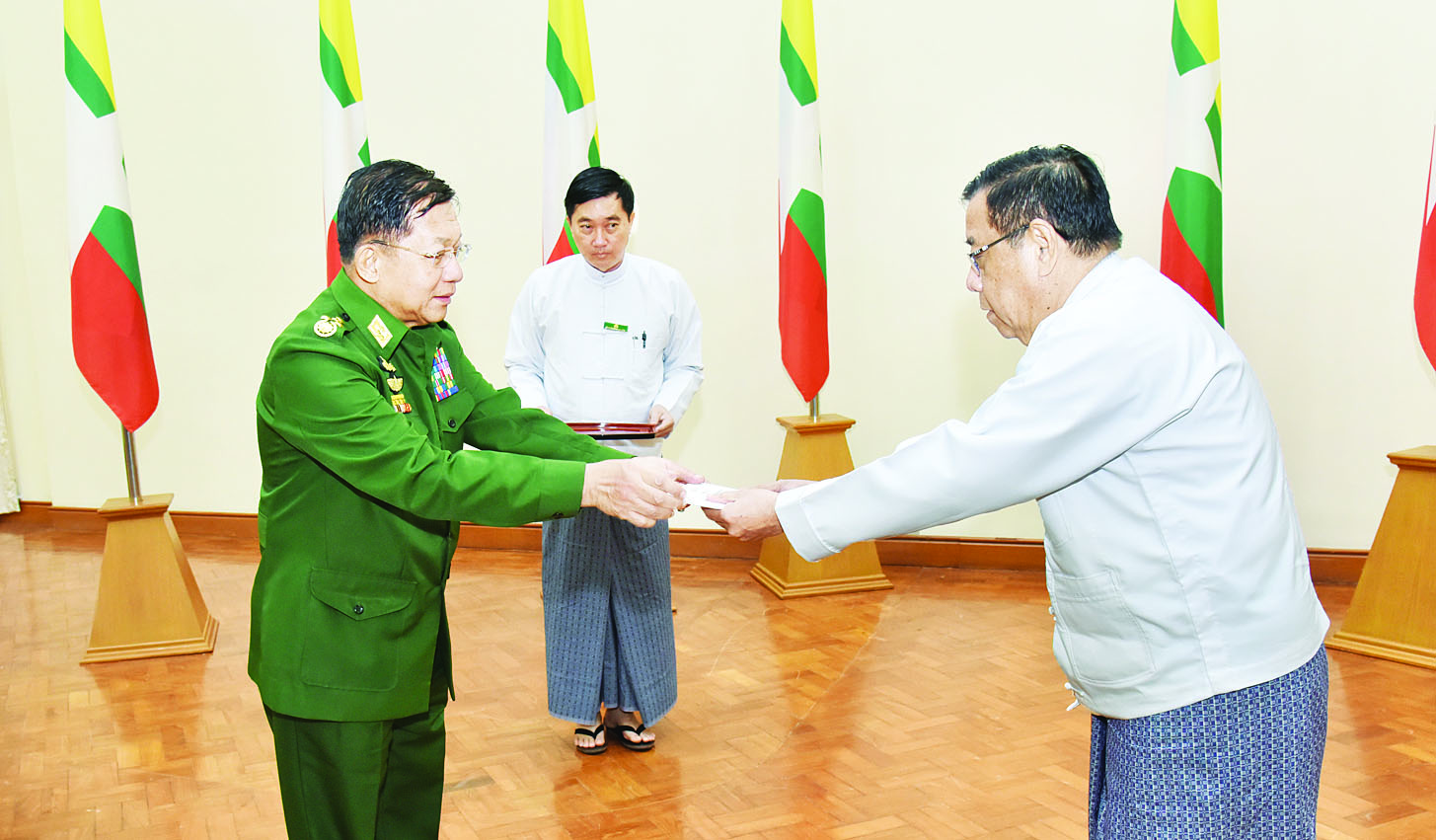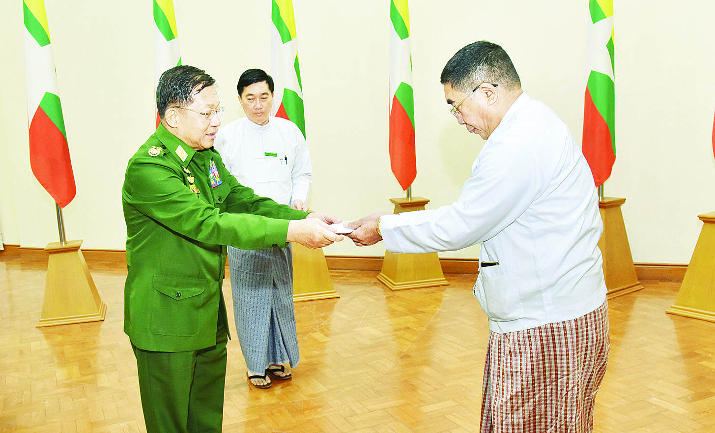 ထို့နောက် နိုင်ငံတော်စီမံအုပ်ချုပ်ရေးကောင်စီဥက္ကဋ္ဌ နိုင်ငံတော်ဝန်ကြီးချုပ်က အကြမ်းဖက်ဖြစ်စဉ်များကြောင့် ယာယီနေရပ်စွန့်ခွာနေရသည့် ပြည်သူများအတွက် ထောက်ပံ့ငွေများကိုပေးအပ်ရာ နေပြည်တော်ကောင်စီအပါအဝင် တိုင်းဒေသကြီးနှင့် ပြည်နယ်ဝန်ကြီးချုပ်များက အသီးသီးလက်ခံရယူကြသည်။