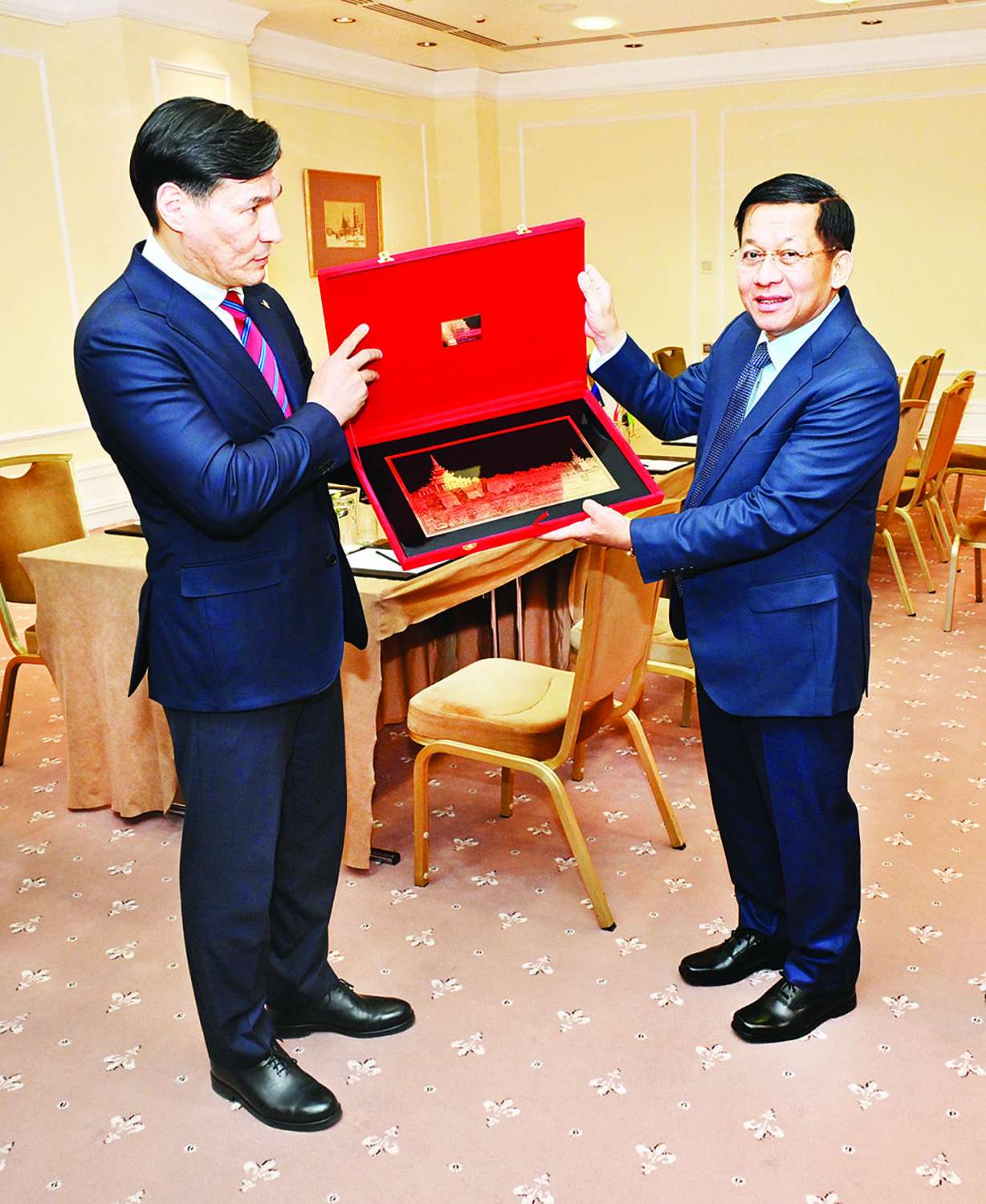 ယင်းနောက် နိုင်ငံတော်စီမံအုပ်ချုပ်ရေးကောင်စီဥက္ကဋ္ဌ နိုင်ငံတော်ဝန်ကြီးချုပ်ထံ ရုရှားဖက်ဒရေးရှင်းနိုင်ငံ ကာမီးကီယာ ပြည်နယ်အကြီးအကဲ H.E.Mr. Batu KHASIKOV နှင့်အဖွဲ့ဝင်များက လာရောက်ဂါရဝပြုတွေ့ဆုံနှုတ်ဆက်၍ ကာမီးကီယာပြည်နယ်ရှိ ဗုဒ္ဓဥယျာဉ်အတွင်း မြန်မာနိုင်ငံမှစေတီတော် (သို့မဟုတ်) ဗုဒ္ဓရုပ်ပွားတော် လာရောက်တည်ထားကိုးကွယ်စေလိုမှု၊ မြန်မာနိုင်ငံမှ လေ့လာရေးကိုယ်စားလှယ်အဖွဲ့အား ကာမီးကီယာပြည်နယ်သို့ လာရောက်လေ့လာစေလိုမှုများနှင့် ပတ်သက်၍ ရင်းရင်းနှီးနှီးဆွေးနွေးခဲ့ကြသည်။