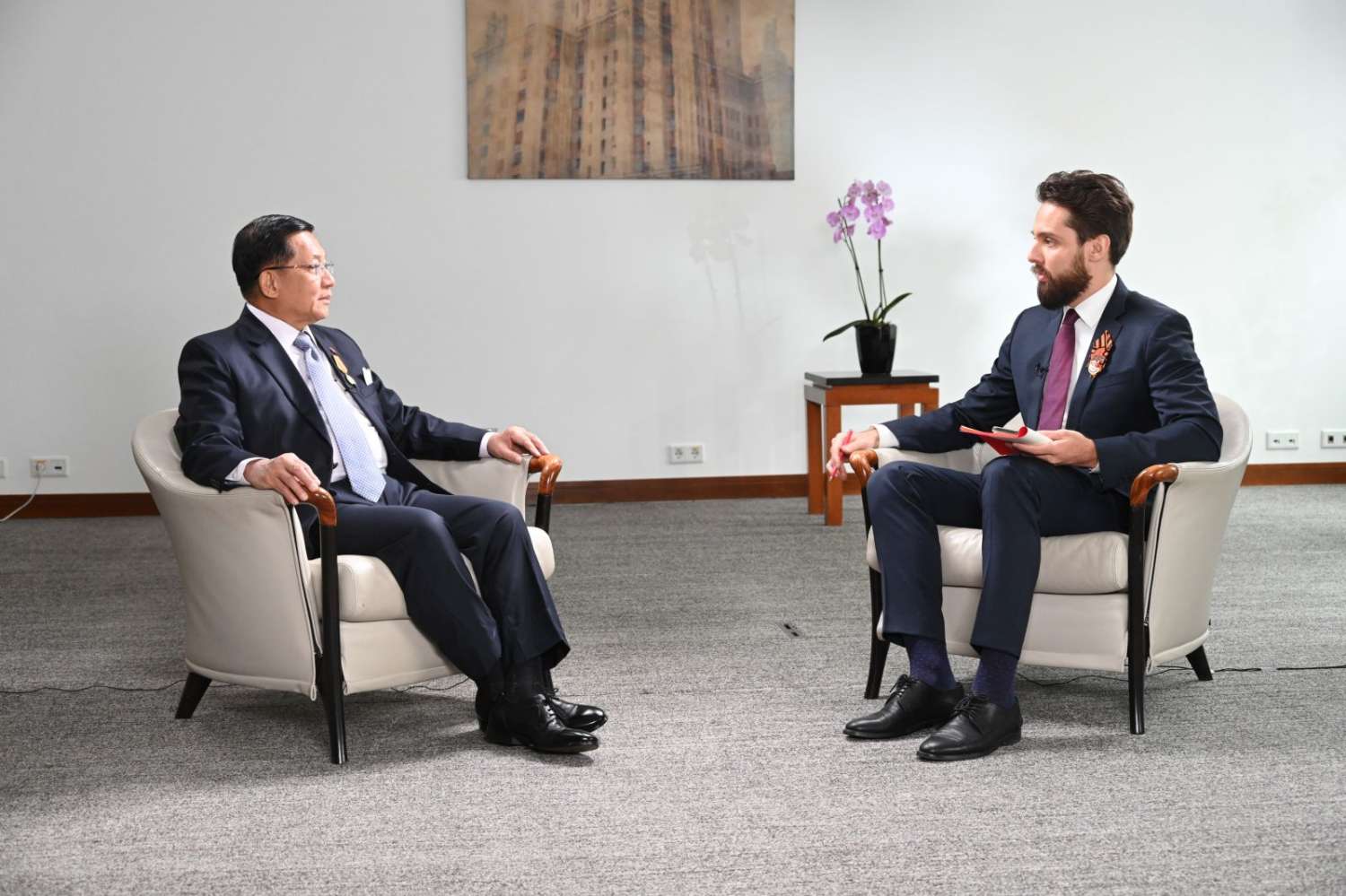 နိုင်ငံတော်စီမံအုပ်ချုပ်ရေးကောင်စီဥက္ကဋ္ဌ နိုင်ငံတော်ဝန်ကြီးချုပ် ဗိုလ်ချုပ်မှူးကြီး မင်းအောင်လှိုင် ရုရှားဖက်ဒရေးရှင်းနိုင်ငံ၊ RT TV Channel နှင့် Krasnaya Zvezda သတင်းစာတို့၏ တွေ့ဆုံမေးမြန်းမှုများအား လက်ခံဖြေကြား