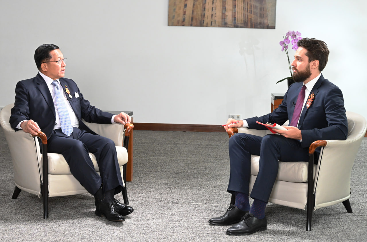 နိုင်ငံတော်စီမံအုပ်ချုပ်ရေးကောင်စီဥက္ကဋ္ဌ နိုင်ငံတော်ဝန်ကြီးချုပ် ဗိုလ်ချုပ်မှူးကြီး မင်းအောင်လှိုင်သည် ၂၀၂၅ ခုနှစ်၊ မေလ ၈ ရက်နေ့တွင် ရုရှားနိုင်ငံ RT သတင်းဌာန အား မော်စကိုမြို့၊ Ararat Park ဟိုတယ်ခန်းမ၌ လက်ခံတွေ့ဆုံခဲ့ပြီး သိရှိလိုသည့် မေးမြန်းမှုများကို ဖြေကြားခဲ့ပါသည်။ တွေ့ဆုံမေးမြန်းမှု အပြည့်အစုံမှာ−