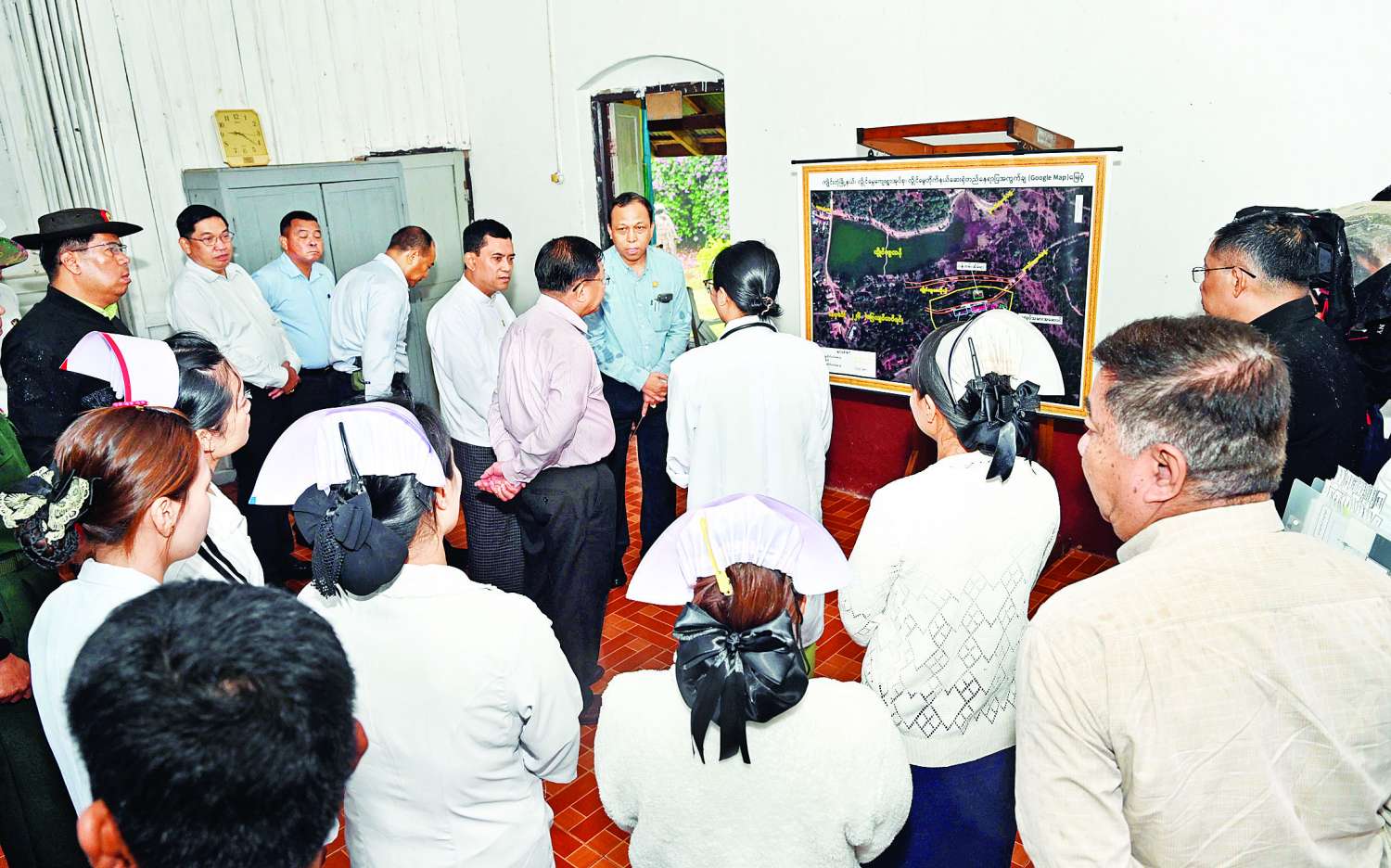 ယင်းနောက် နိုင်ငံတော်စီမံအုပ်ချုပ်ရေးကောင်စီဥက္ကဋ္ဌ နိုင်ငံတော်ဝန်ကြီးချုပ်နှင့် အဖွဲ့ဝင်များသည် လွိုင်မွေမြို့၊ ၁၀၇ နှစ် သက်တမ်းရှိ တိုက်နယ်ပြည်သူ့ဆေးရုံသို့ရောက်ရှိကြရာ ဆေးရုံအုပ်ကြီး ဒေါက်တာသန္တာဝင်းနှင့် တာဝန်ရှိသူများက ကြိုဆိုနှုတ်ဆက်ကြသည်။ ထို့နောက် နိုင်ငံတော်စီမံအုပ်ချုပ်ရေးကောင်စီဥက္ကဋ္ဌ နိုင်ငံတော်ဝန်ကြီးချုပ်နှင့် အဖွဲ့ဝင်များသည် ဆေးရုံအတွင်းလှည့်လည်ကြည့်ရှု၍ ဆေးရုံအားအဆင့်မြှင့်တင် ဆောင်ရွက်ပေးသွားမည့်အခြေအနေများနှင့်ပတ်သက်၍ တာဝန်ရှိသူများကို မှာကြားသည်။
