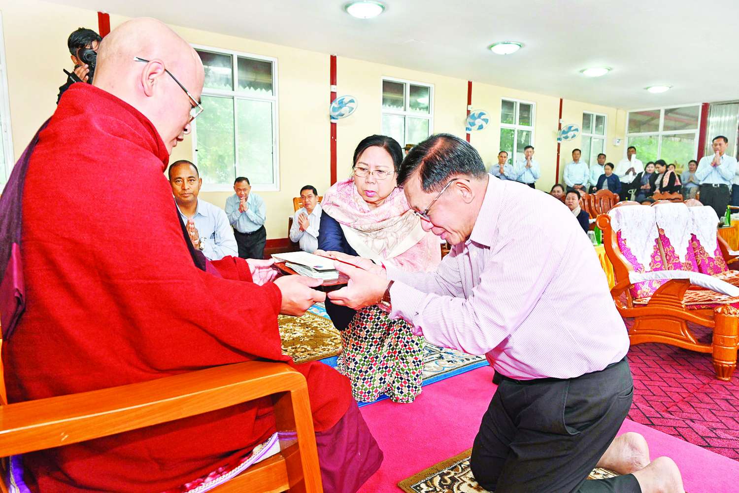 ထို့နောက် နိုင်ငံတော်စီမံအုပ်ချုပ်ရေးကောင်စီဥက္ကဋ္ဌ နိုင်ငံတော်ဝန်ကြီးချုပ်နှင့်ဇနီးတို့သည် တောင်တန်းသာသနာပြုဆရာတော် ဘဒ္ဒန္တဝေပုလ္လအား ဖူးမြော်ကြည်ညိုကာ နဝကမ္မအလှူငွေများနှင့် လှူဖွယ်ပစ္စည်းများ ဆက်ကပ်လှူဒါန်းသည်။ ထို့နောက် အဖွဲ့ဝင်များနှင့်အတူ စေတီတော်ကြီးအား လက်ယာရစ်လှည့်လည်ပူဇော်ကာ စေတီတော် ရေရှည်တည်တံ့ခိုင်မြဲရေးအတွက် ထိန်းသိမ်းဆောင်ရွက်ရန်လိုအပ်သည်များနှင့်ပတ်သက်၍ တာဝန်ရှိသူများအား မှာကြားခဲ့ကြောင်း သတင်းရရှိသည်။