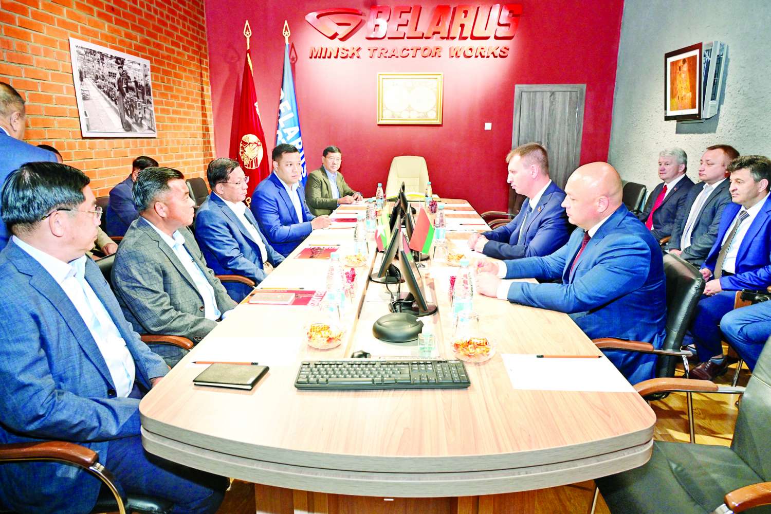 ယင်းနောက် နိုင်ငံတော်စီမံအုပ်ချုပ်ရေးကောင်စီဥက္ကဋ္ဌ နိုင်ငံတော်ဝန်ကြီးချုပ်နှင့် အဖွဲ့ဝင်များ၊ ဘယ်လာရုစ်သမ္မတနိုင်ငံ၊ စက်မှုဝန်ကြီးဌာနဝန်ကြီးနှင့် အဖွဲ့ဝင်များသည် စက်ရုံအစည်းအဝေးခန်းမအတွင်း တွေ့ဆုံ၍ ဘယ်လာရုစ်နိုင်ငံ၊ စက်မှုဝန်ကြီးဌာနအောက်ရှိ အကြီးစားစက်မှုပစ္စည်းထုတ်စက်ရုံ၊ အလုပ်ရုံများမှ စိုက်ပျိုးရေးလုပ်ငန်းသုံးစက်ကိရိယာများ၊ ယာဉ်ယန္တရားများ ထုတ်လုပ်လျက်ရှိမှုနှင့် ပြည်တွင်း၊ ပြည်ပသို့ တင်ပို့ရောင်းချလျက်ရှိမှုအခြေအနေများ၊ မြန်မာနိုင်ငံ၏ စက်မှုလယ်ယာကဏ္ဍဖွံ့ဖြိုးတိုးတက်ရေး၊ စိုက်ပျိုးရေးလုပ်ငန်းသုံးစက်ကိရိယာများ၊ ယာဉ်ယန္တရားများ ထုတ်လုပ်ရေးတွင် နည်းပညာပိုင်းဆိုင်ရာ ပူးပေါင်းဆောင်ရွက်နိုင်မည့် အခြေအနေများနှင့်ပတ်သက်၍ ရင်းနှီးပွင့်လင်းစွာ ဆွေးနွေးခဲ့ကြသည်။