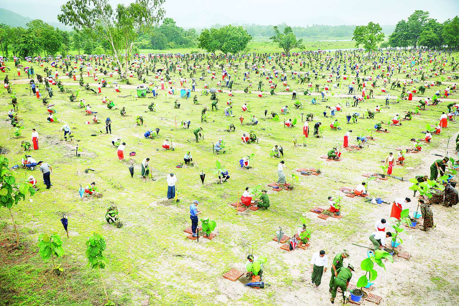 သဘာဝပတ်ဝန်းကျင်အား ထိန်းသိမ်းနိုင်စေရန်နှင့် ရာသီဥတုကိုအထောက်အကူဖြစ်စေရန်၊ အရိပ်အာဝါသရရှိစေရန်၊ နိုင်ငံ့စီးပွားရေးအတွက် တစ်ဖက်တစ်လမ်းမှ အထောက်အကူ ဖြစ်စေရန်ရည်ရွယ်၍ ကာကွယ်ရေးဦးစီးချုပ်ရုံး (ကြည်း၊ ရေ၊ လေ) မိသားစုများနှင့် တိုင်းစစ်ဌာနချုပ်အသီးသီးတို့တွင် ၂၀၁၁ ခုနှစ်မှစ၍ နှစ်စဉ် မိုးရာသီ တစ်အုပ်တစ်မ သစ်ပင်စိုက်ပျိုးပွဲများ ကျင်းပပြုလုပ်လျက်ရှိသည်။