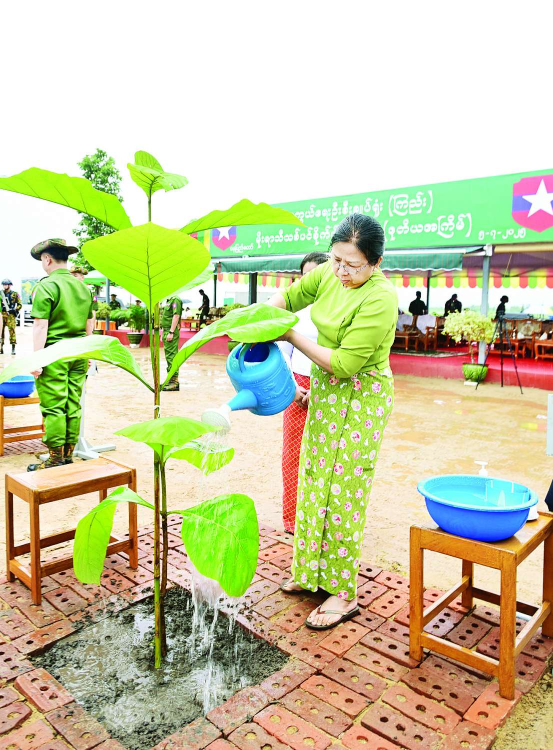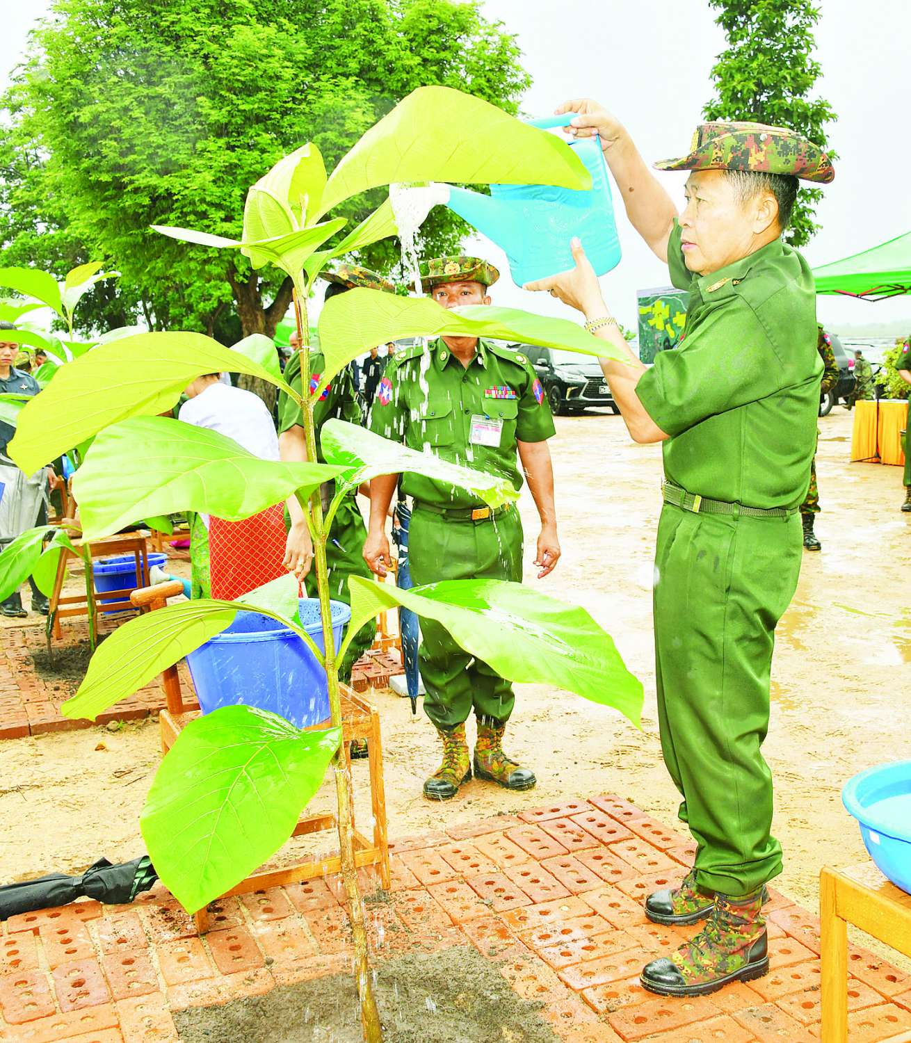 ဦးစွာ နိုင်ငံတော်စီမံအုပ်ချုပ်ရေးကောင်စီဥက္ကဋ္ဌ တပ်မတော်ကာကွယ်ရေးဦးစီးချုပ်နှင့် ဇနီးတို့က ရတနာတန်းဝင်ကျွန်းပင်ကို ဦးဆောင်စိုက်ပျိုးပေးကြသည်။ ဆက်လက်ပြီး နိုင်ငံတော်စီမံအုပ်ချုပ်ရေးကောင်စီဒုတိယဥက္ကဋ္ဌ ဒုတိယတပ်မတော်ကာကွယ်ရေးဦးစီးချုပ် ကာကွယ်ရေးဦးစီးချုပ်(ကြည်း)နှင့် ဇနီး၊ ညှိနှိုင်းကွပ်ကဲရေးမှူး (ကြည်း၊ ရေ၊ လေ)နှင့်ဇနီး၊ ကာကွယ်ရေးဦးစီးချုပ်(ရေ)နှင့်ဇနီး၊ ကာကွယ်ရေးဦးစီးချုပ်(လေ)နှင့်ဇနီး၊ ကာကွယ်ရေးဦးစီးချုပ်ရုံးမှ တပ်မတော်အရာရှိကြီးများနှင့် ဇနီးများ၊ အခမ်းအနားတက်ရောက်လာကြသည့် အရာရှိ၊ စစ်သည်မိသားစုများက သတ်မှတ်နေရာအသီးသီးတွင် သစ်ပင်များကို စိုက်ပျိုးကြသည်။ ထို့နောက် နိုင်ငံတော်စီမံအုပ်ချုပ်ရေးကောင်စီဥက္ကဋ္ဌ တပ်မတော်ကာကွယ်ရေးဦးစီးချုပ်နှင့် ဇနီး၊ အဖွဲ့ဝင်များသည် အရာရှိ၊ စစ်သည်မိသားစုများ၏ စုပေါင်းသစ်ပင်စိုက်ပျိုးနေမှုအား လှည့်လည်ကြည့်ရှုအားပေးကြသည်။